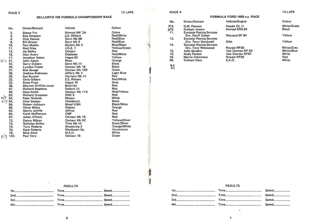 Slight creasing front/rear cover, slight discolouration, rusty staples/staining, lap times/results written in pencil on entrant’s pages (as per photo)