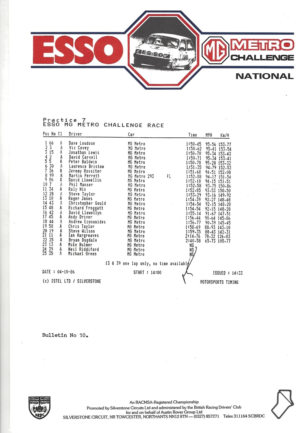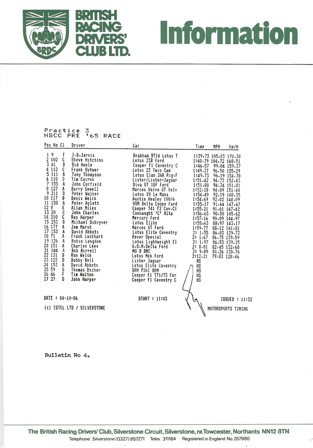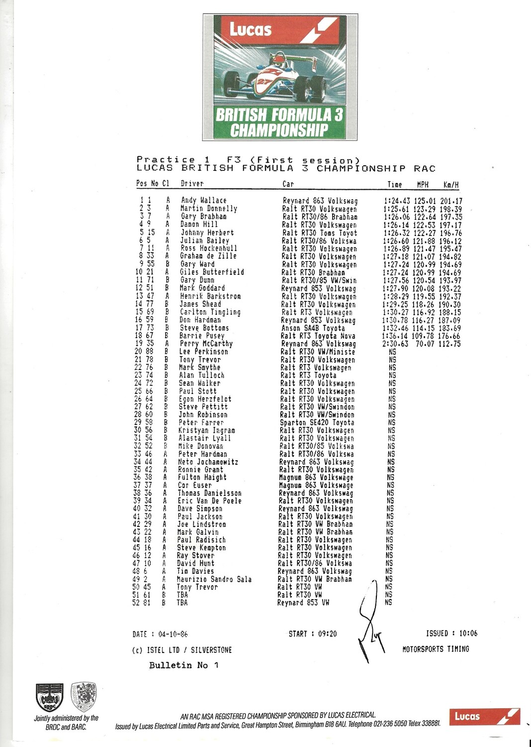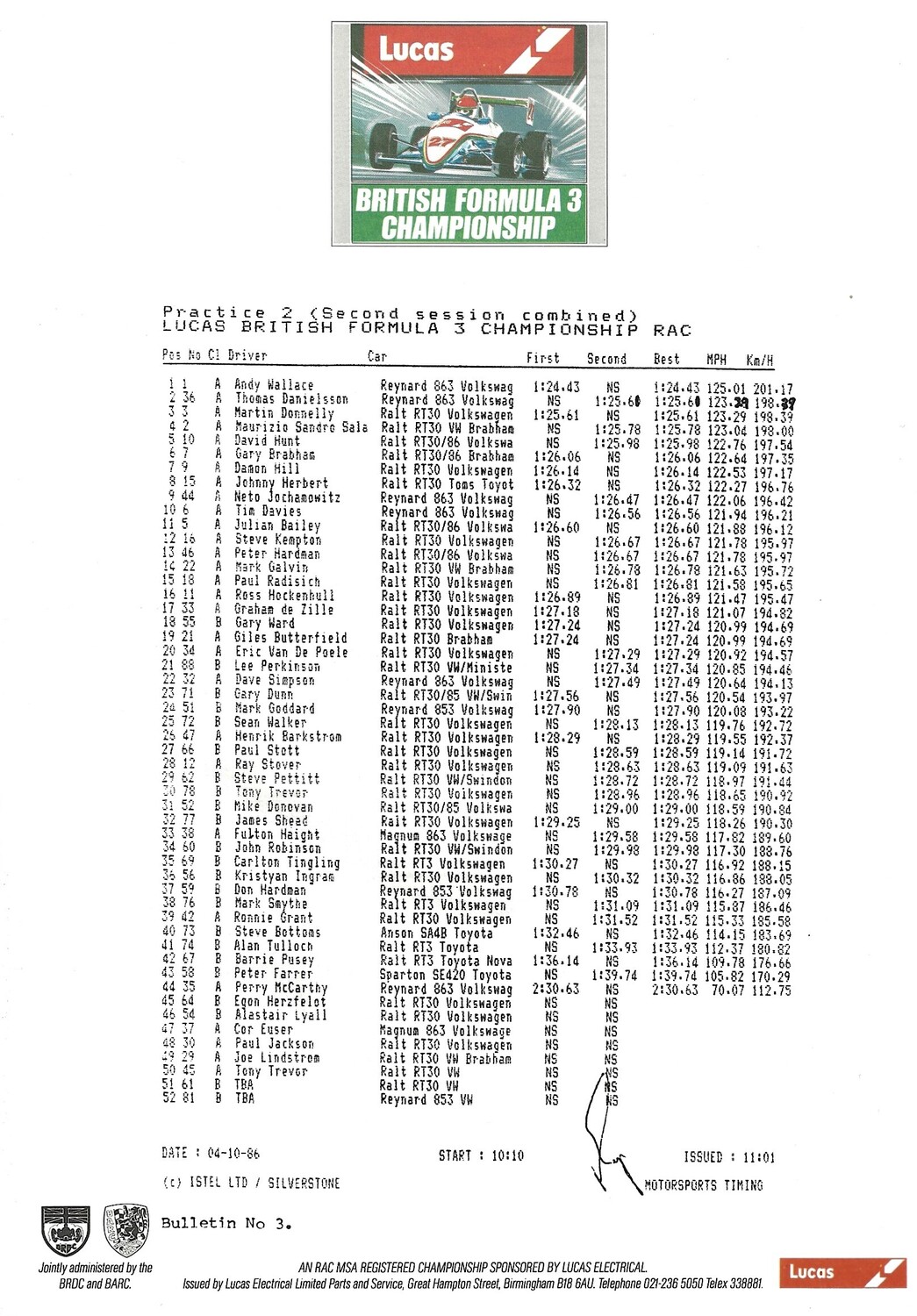 1986 Silverstone B.R.D.C Championship Finals Meeting (04-05/10/1986) Motor Racing Programme & Practice/Result Timing Sheets