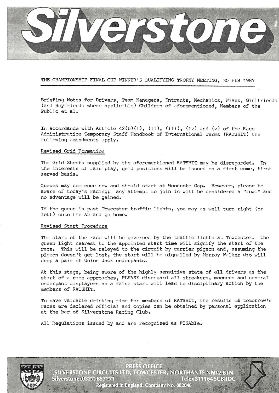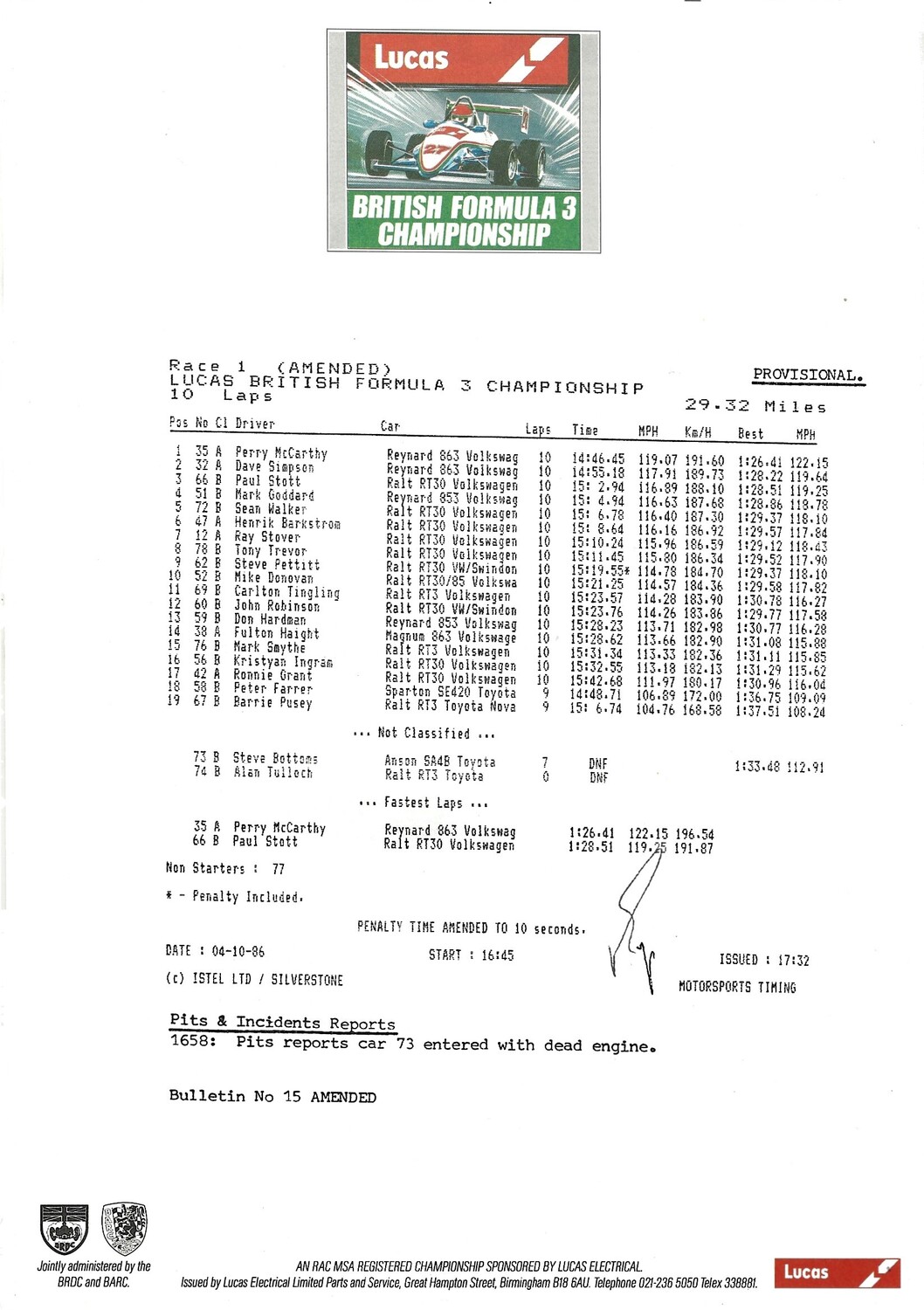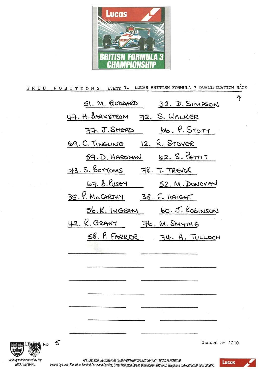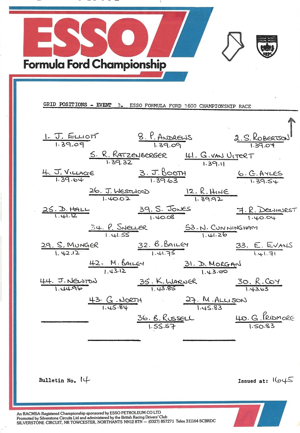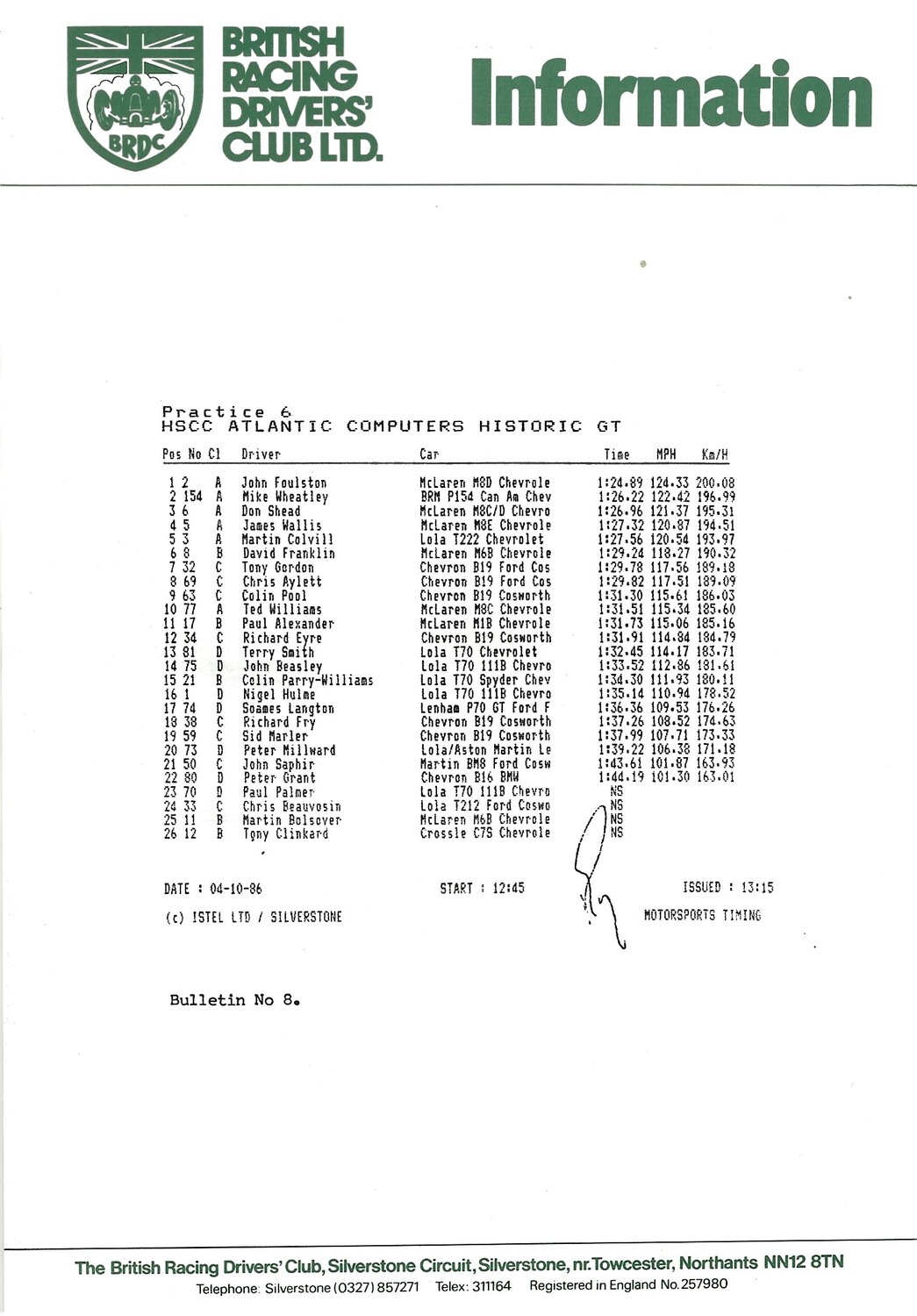 1986 Silverstone B.R.D.C Championship Finals Meeting (04-05/10/1986) Motor Racing Programme & Practice/Result Timing Sheets