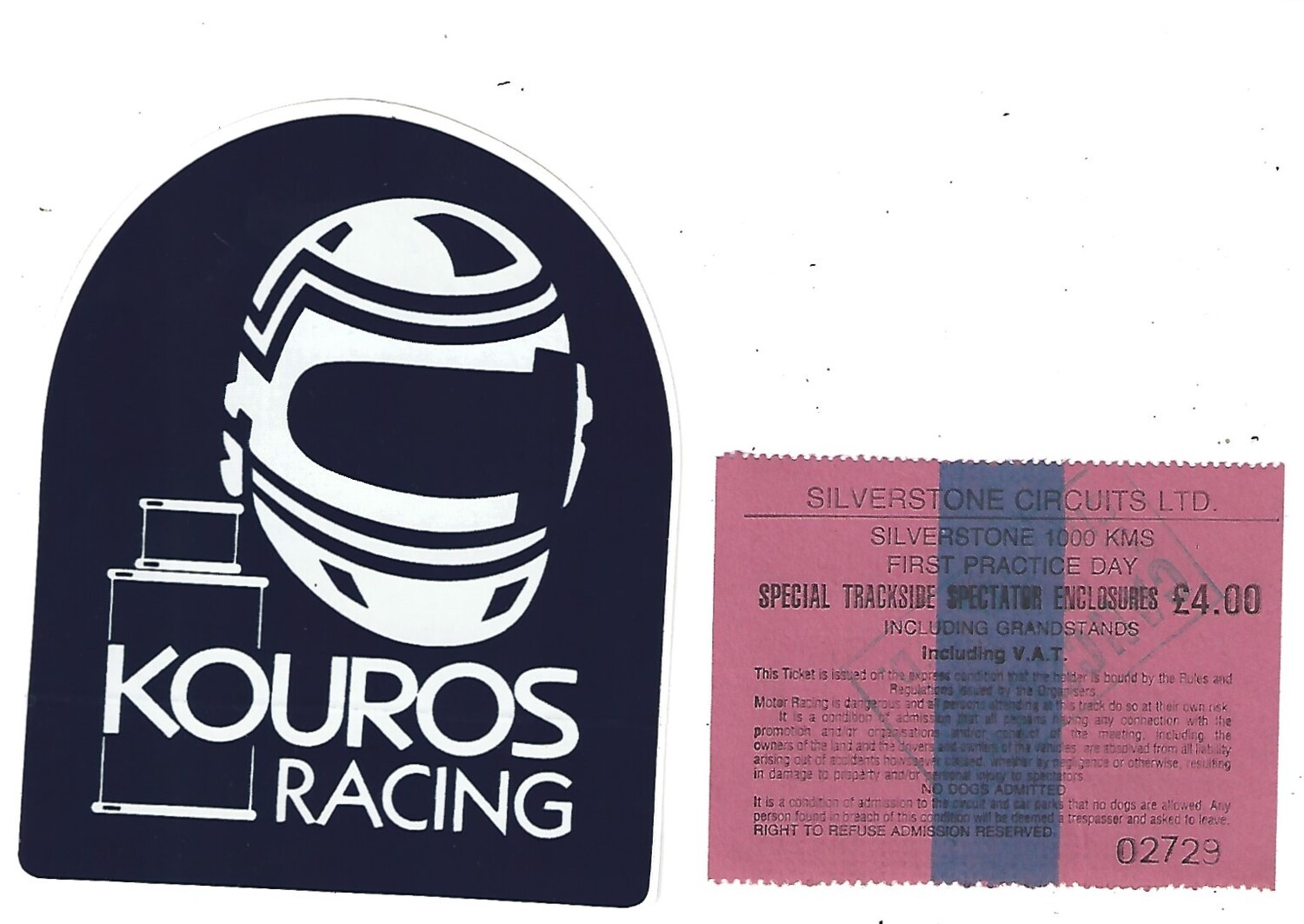 A4 programme. Slight creasing & discolouration front/rear cover, rusty staple, no handwriting. Loose event entry ticket and Kouros Racing sticker (as per photo)