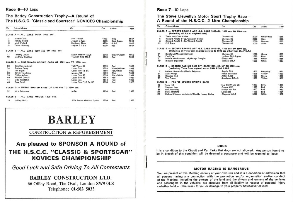 1989 Silverstone The H.S.C.C Silverstone Race Day (23/09/1989) Motor Racing Programme