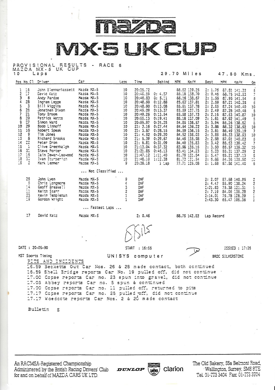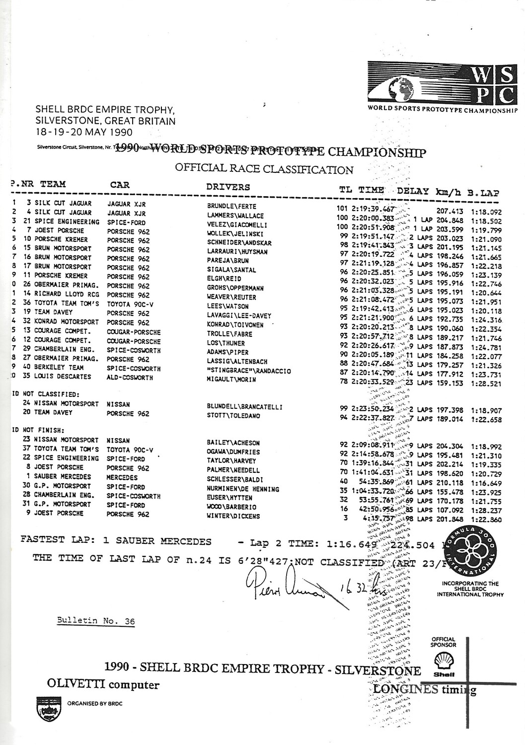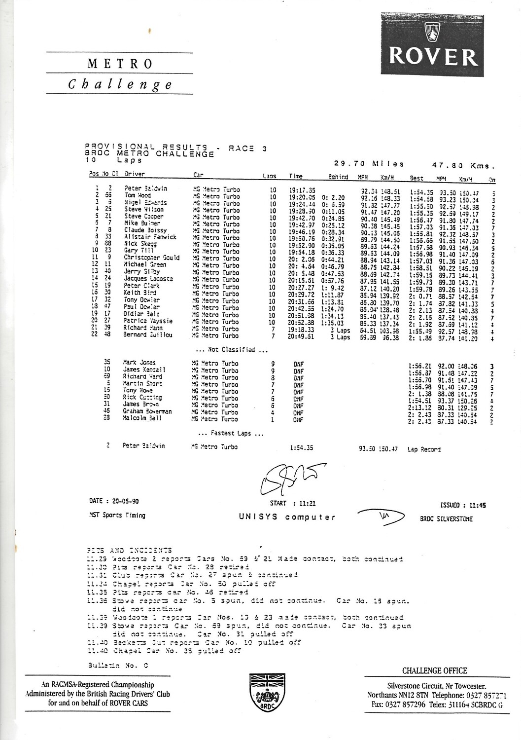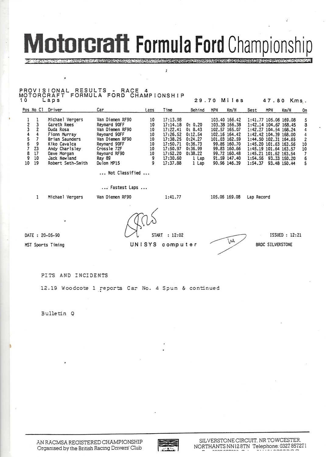 1990 Silverstone Shell B.R.D.C Empire Trophy Meeting (18-19/05/1990) Motor Racing Programme & Practice/Result Timing Sheets