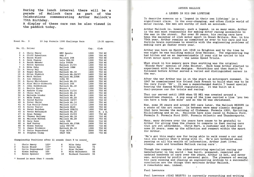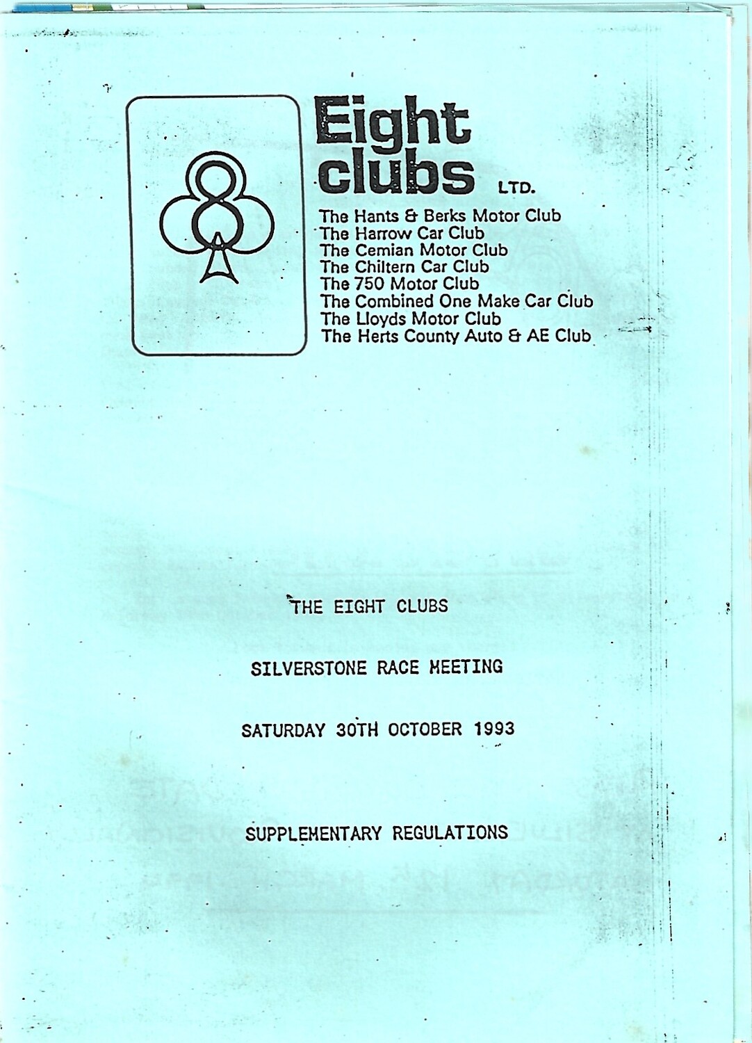 1993 Silverstone The Eight Clubs 1993 Silverstone Race Meeting (30/10/1993) Motor Racing Programme