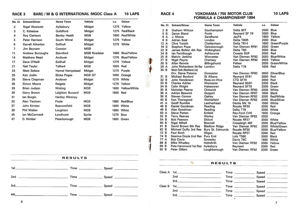 1994 Silverstone SUNBAC Meeting (29/10/1994) Motor Racing Programme