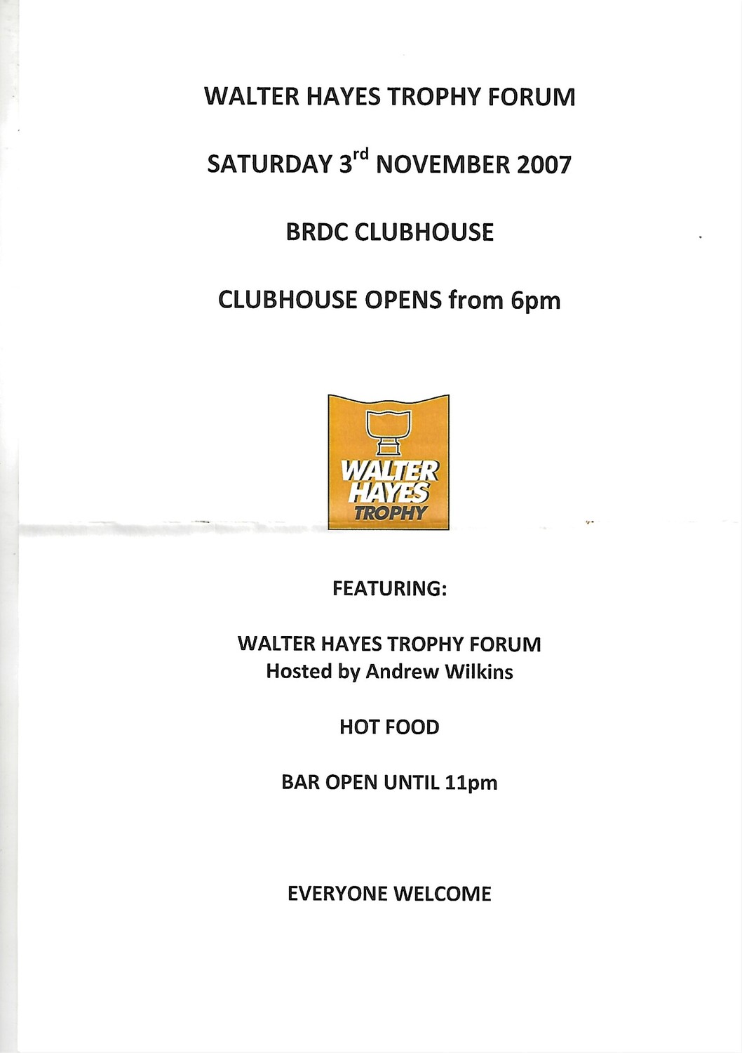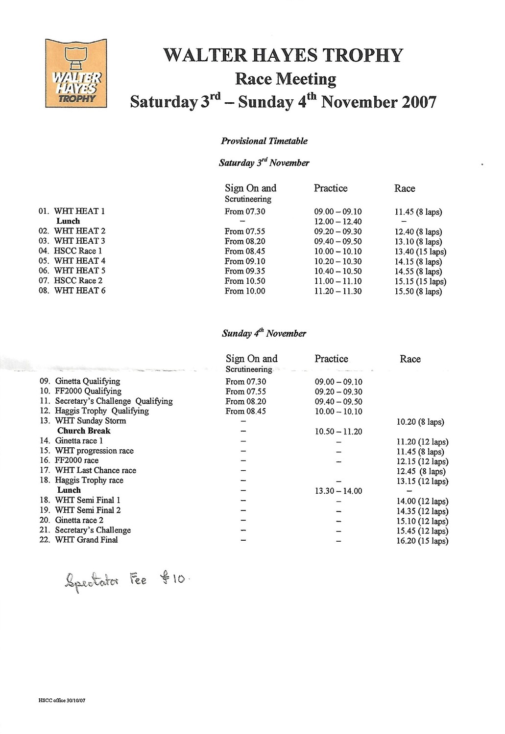 2007 Silverstone Walter Hayes Trophy Race Meeting (3-4/11/2007) Motor Racing Programme