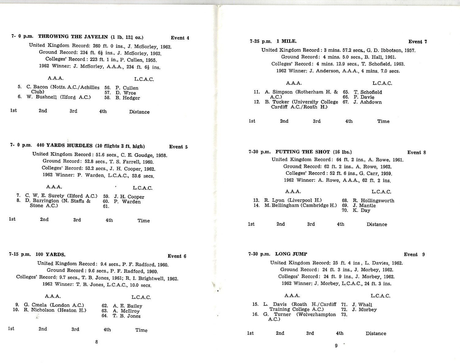 1963 Loughborough Colleges A.C v A.A.A (30/05/1963) Athletics Programme