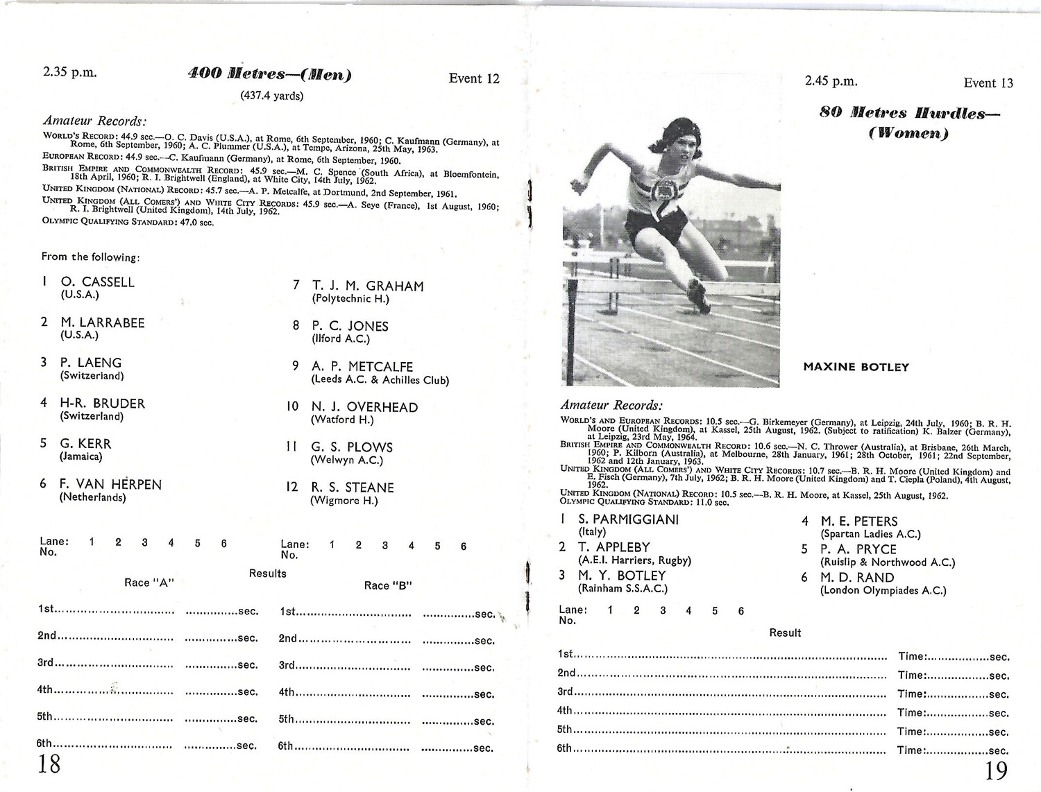 1964 International Athletics Meeting White City (03/08/1964) Athletics Programme