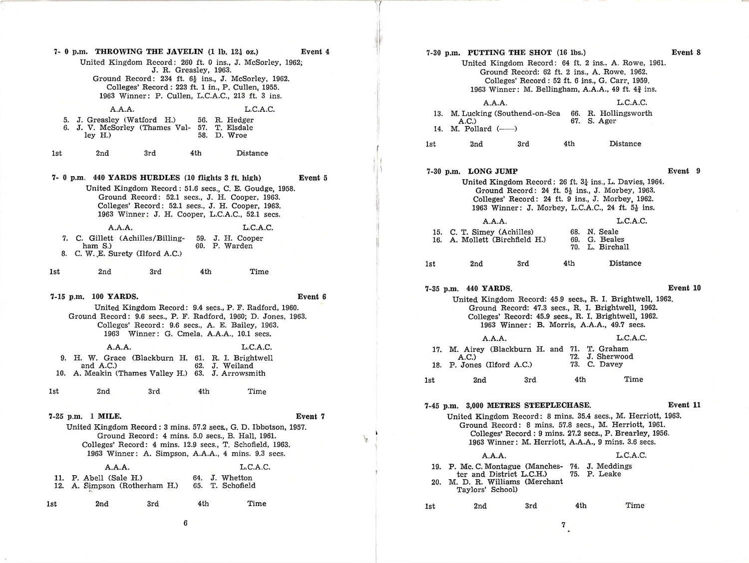 1964 Loughborough Colleges A.C v A.A.A (04/06/1964) Athletics Programme