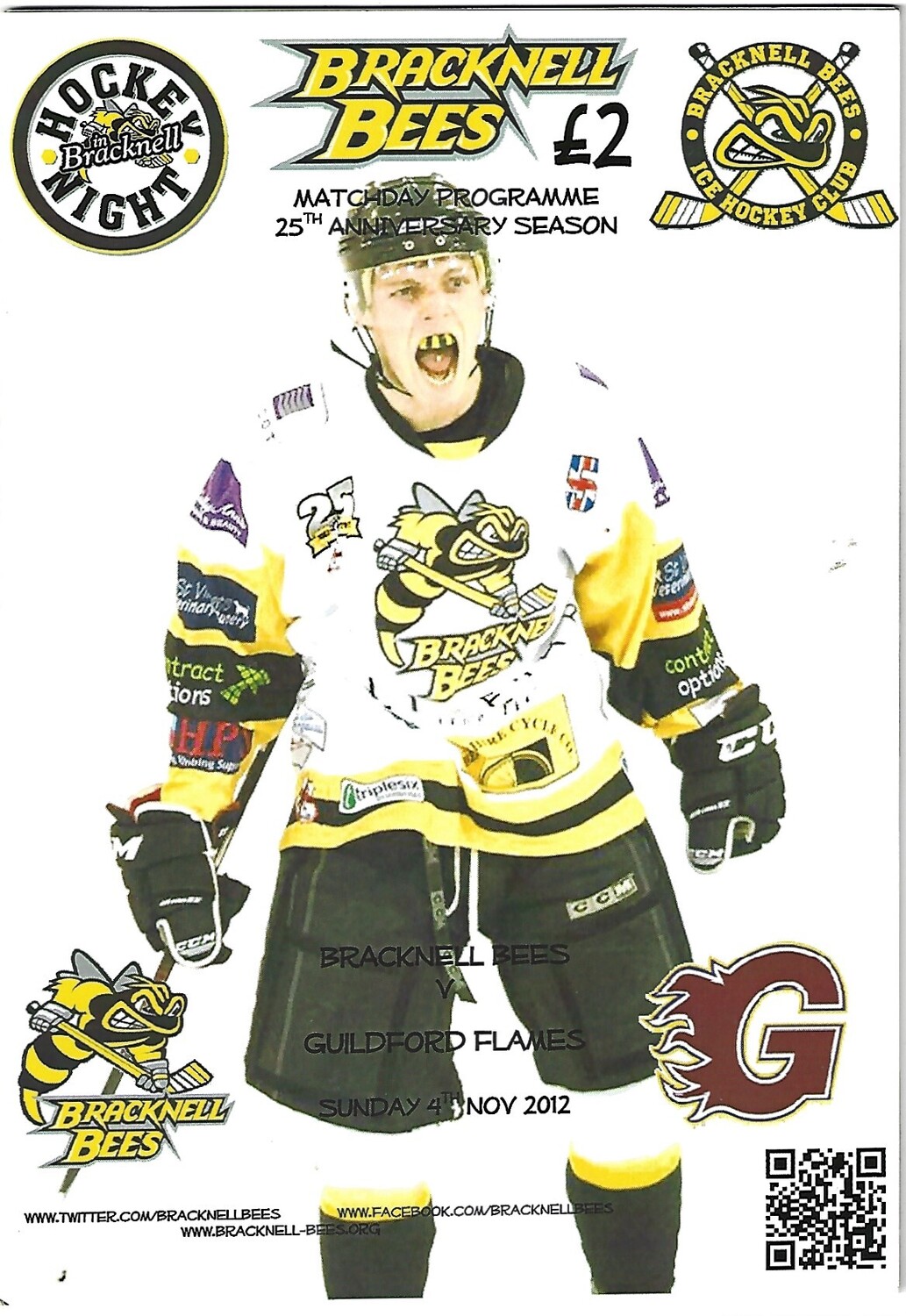 2012/13 Bracknell Bees v Guildford Flames (04/11/2012) EPIHL Ice Hockey League Match Programme