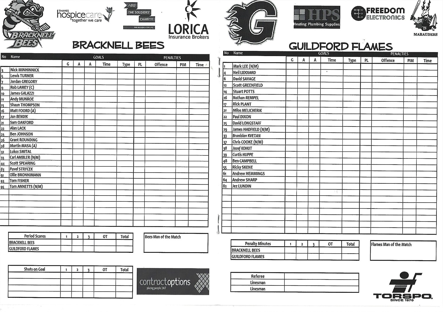 2012/13 Bracknell Bees v Guildford Flames (06/01/2013) EPIHL Ice Hockey League Match Programme