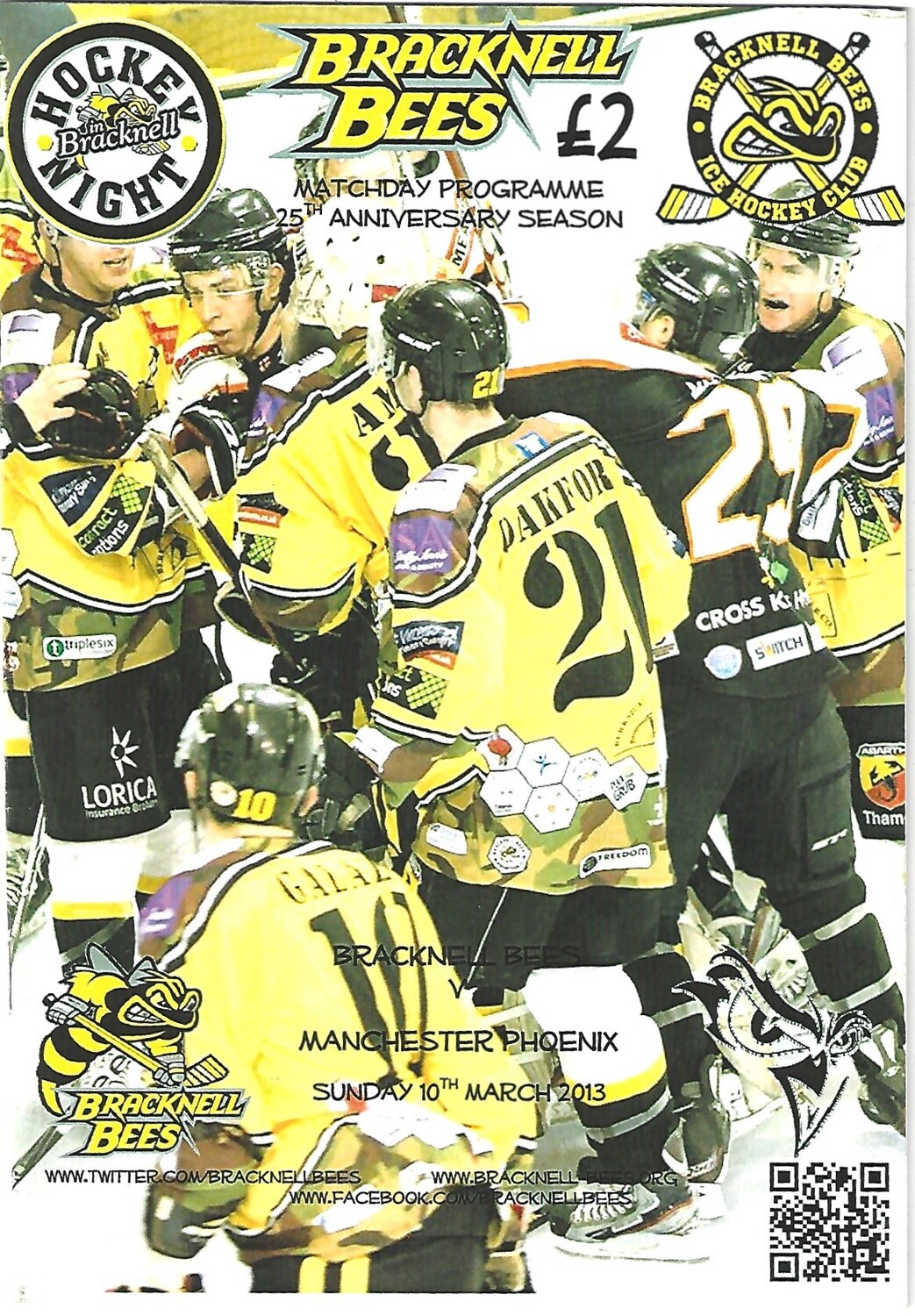 2012/13 Bracknell Bees v Manchester Phoenix (10/03/2013) EPIHL Ice Hockey League Match Programme