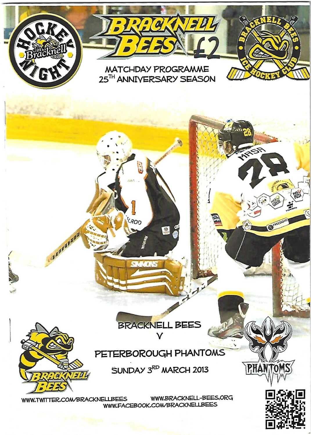 2012/13 Bracknell Bees v Peterborough Phantoms (03/03/2013) EPIHL Ice Hockey League Match Programme