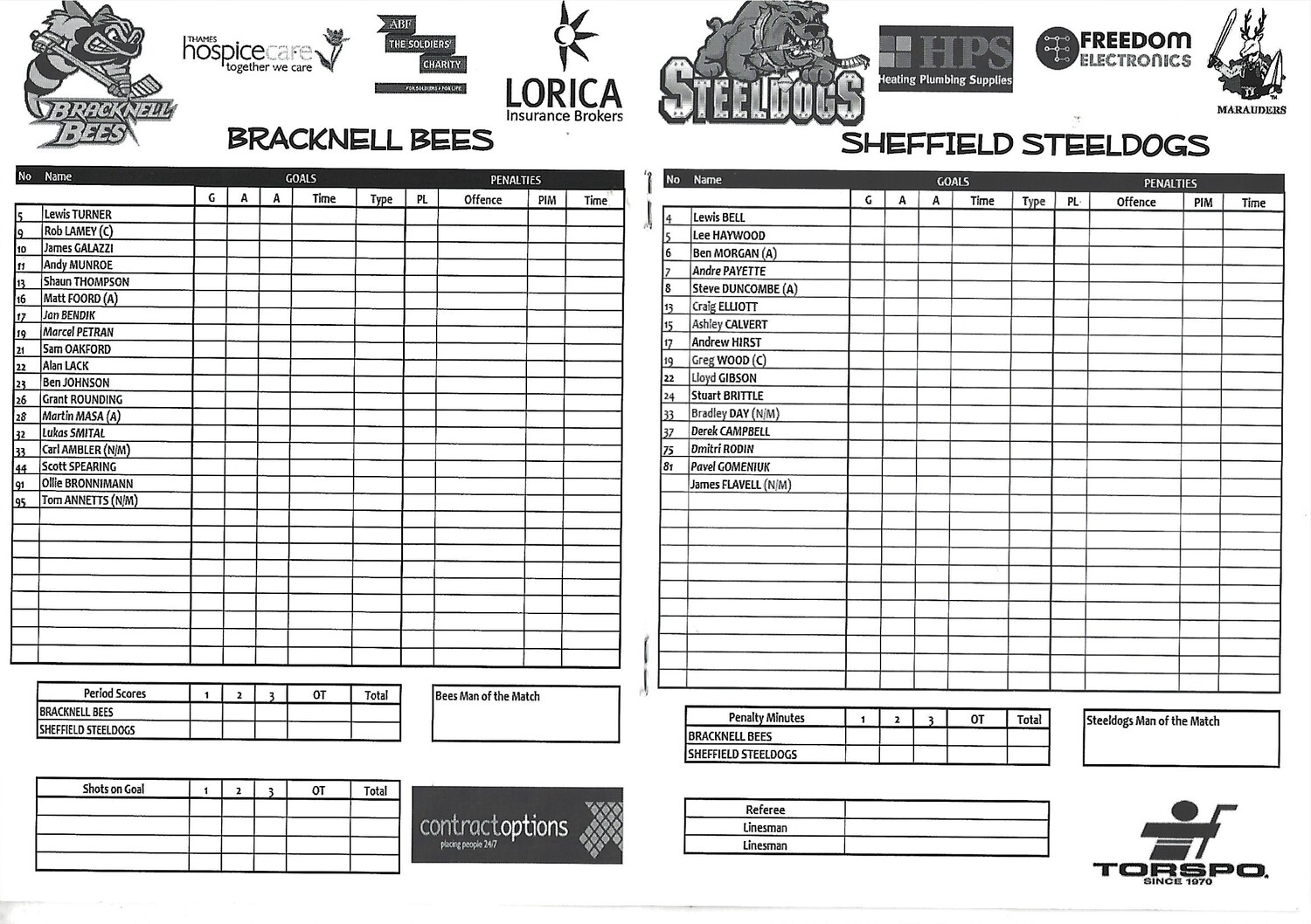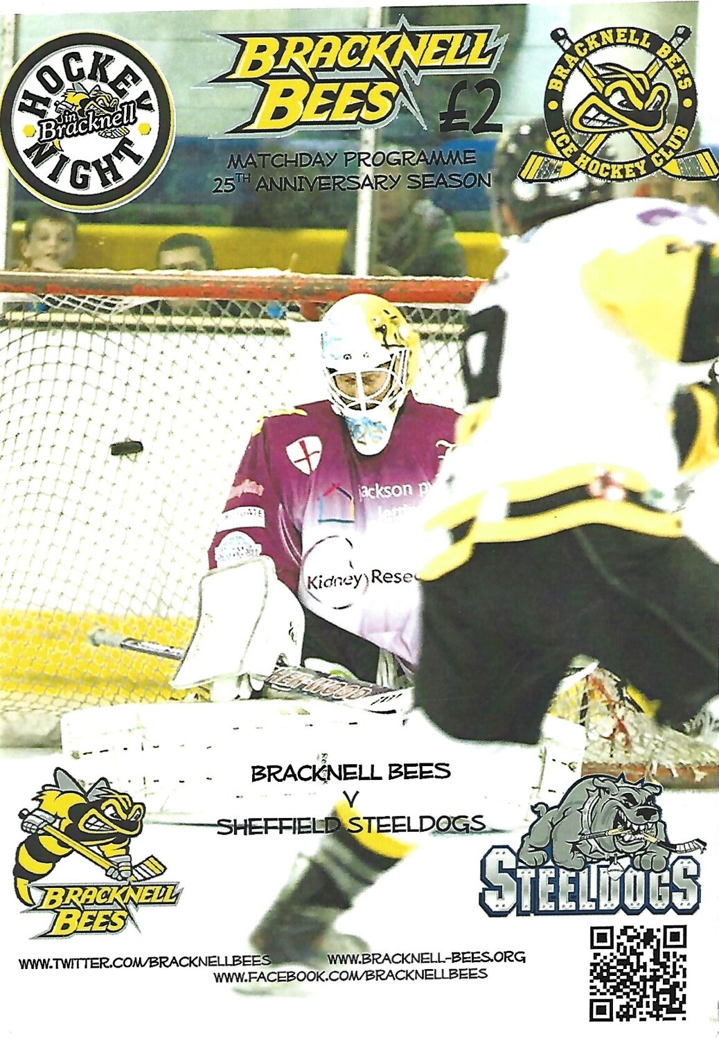 2012/13 Bracknell Bees v Sheffield Steeldogs (02/12/2012) EPIHL Ice Hockey League Match Programme