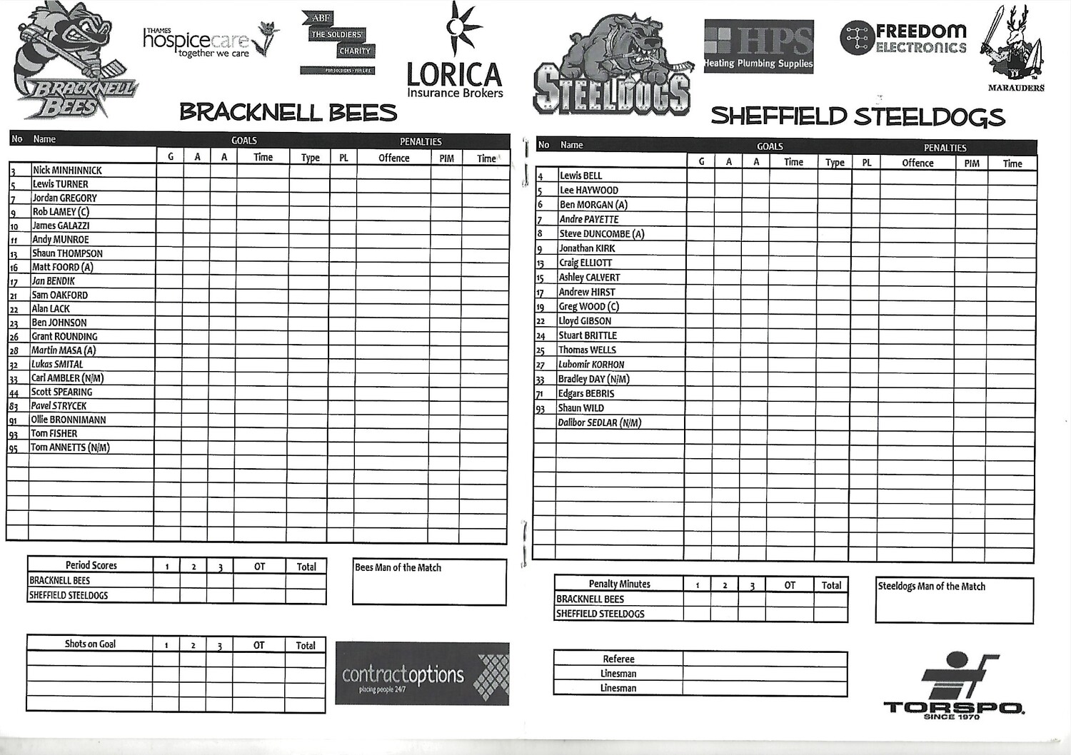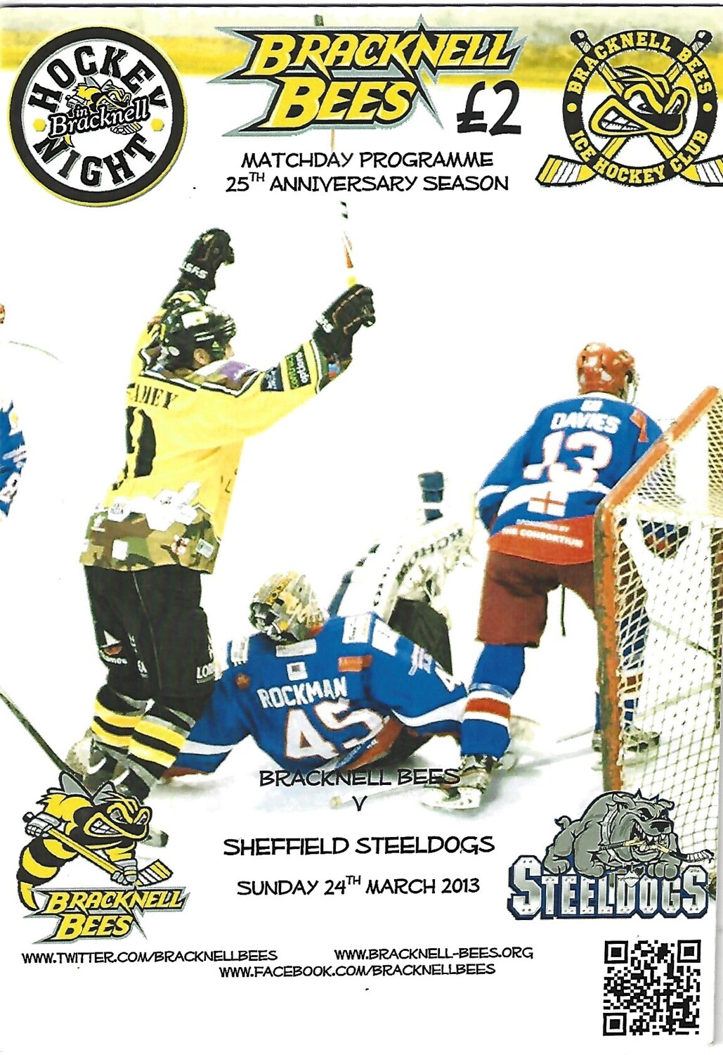 2012/13 Bracknell Bees v Sheffield Steeldogs (24/03/2013) EPIHL Ice Hockey League Match Programme