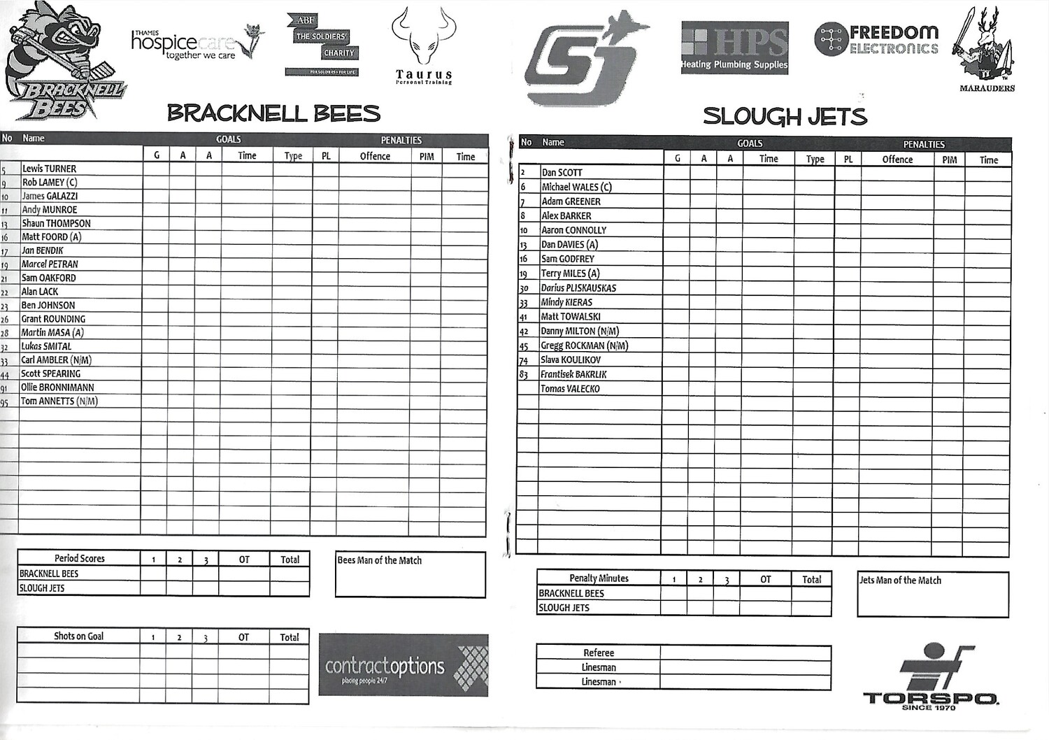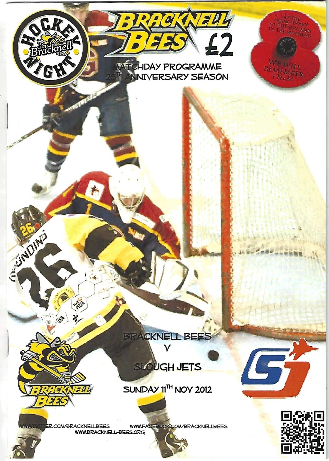 2012/13 Bracknell Bees v Slough Jets (11/11/2012) EPIHL Ice Hockey League Match Programme