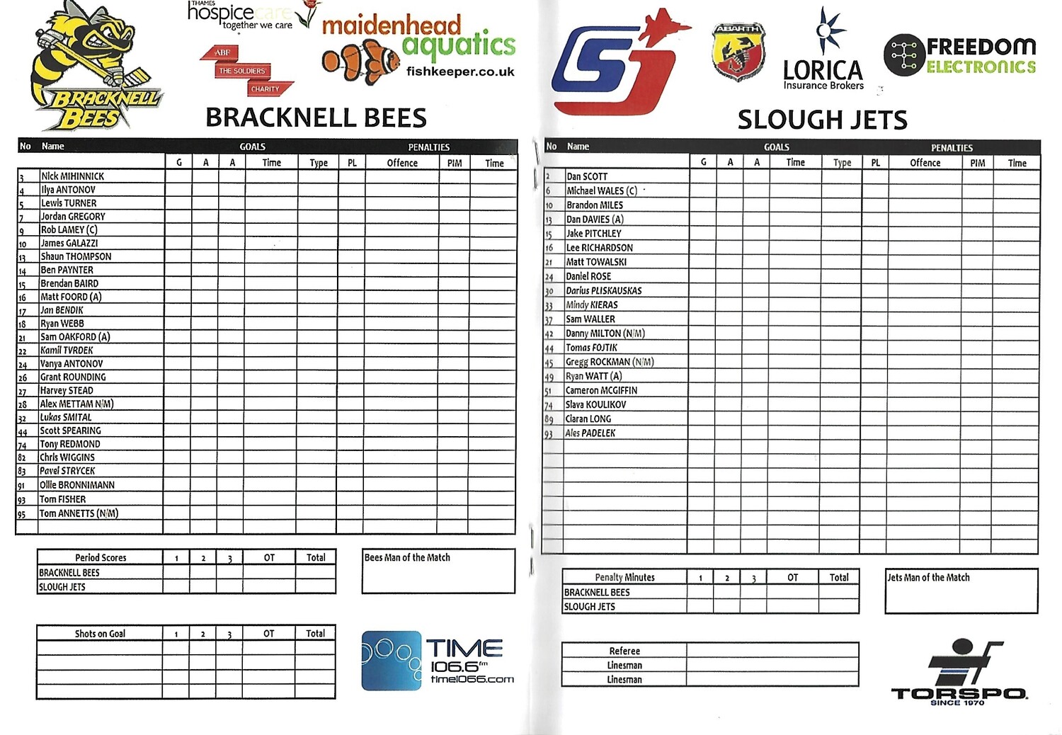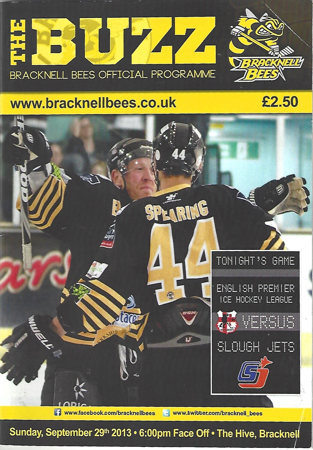 2013/14 Bracknell Bees v Slough Jets (29/09/2013) EPIHL Ice Hockey League Match Programme