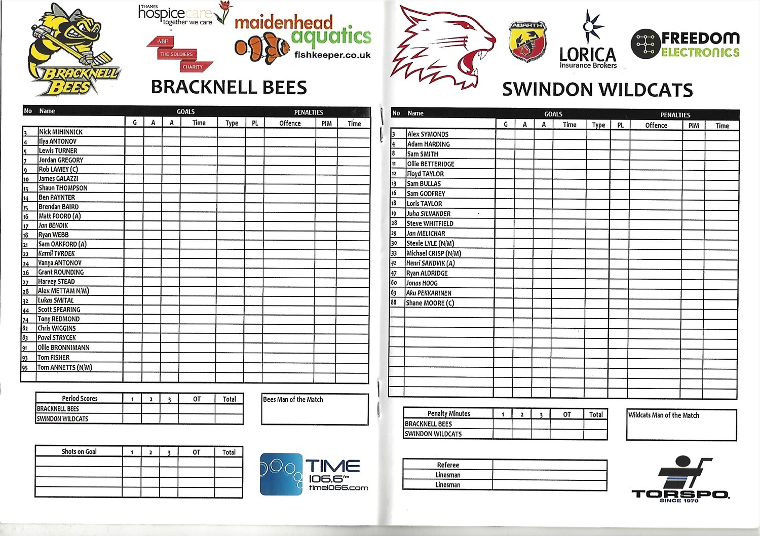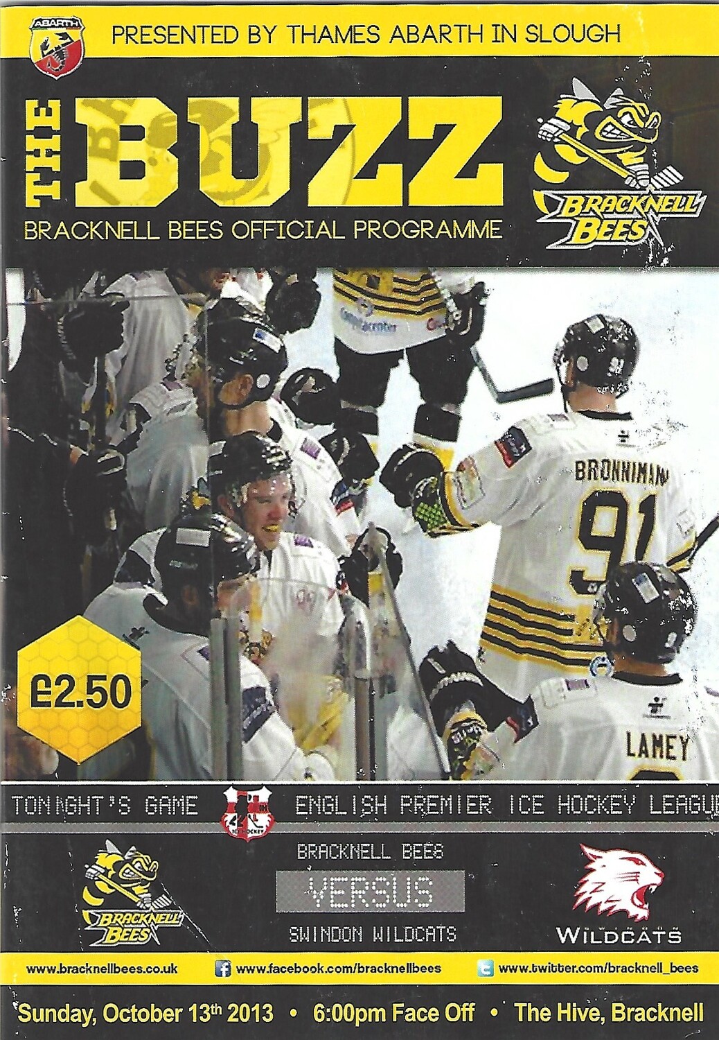 2013/14 Bracknell Bees v Swindon Wildcats (13/10/2013) EPIHL Ice Hockey League Match Programme