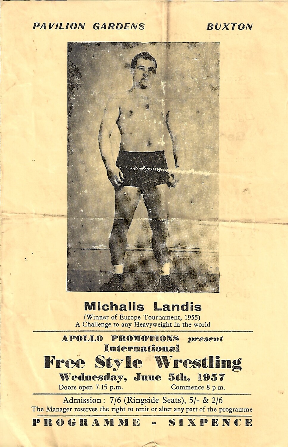 1957 Buxton (05/06/1957) Wresting Programme