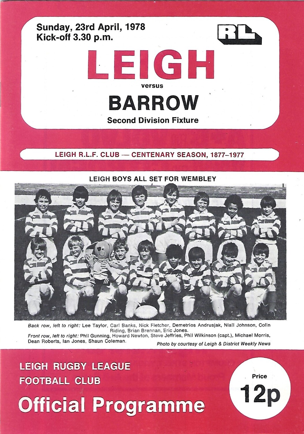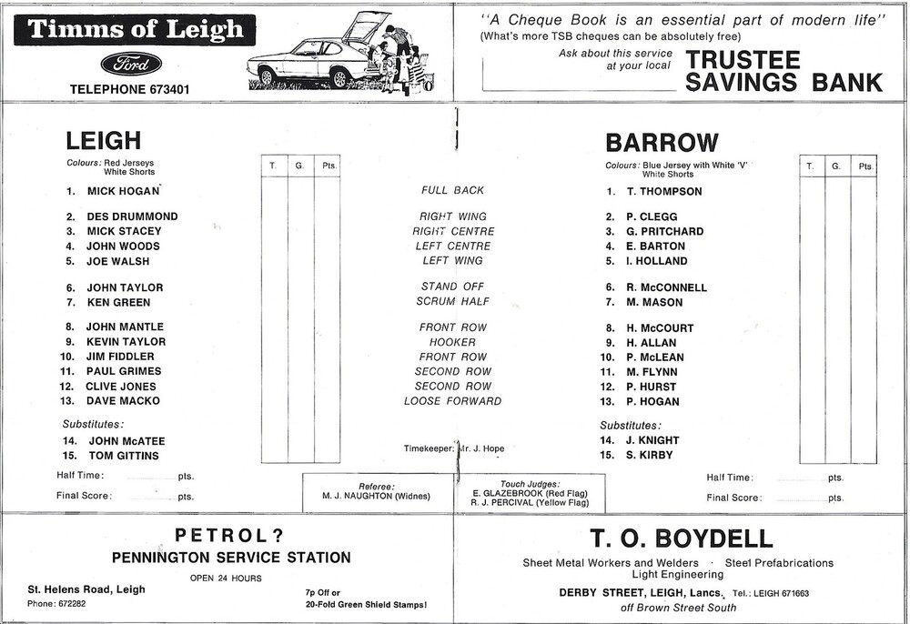 1977/78 Leigh v Barrow Rugby League Programme