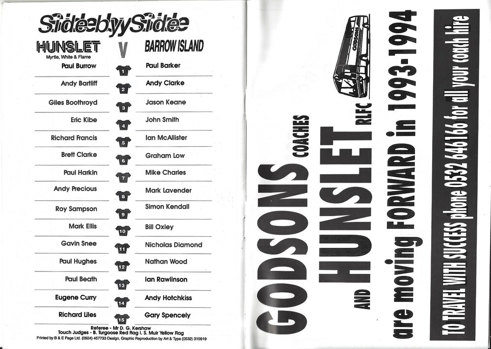 1992/93 Hunslet v Barrow Island Rugby League Challenge Cup 3rd Round programme