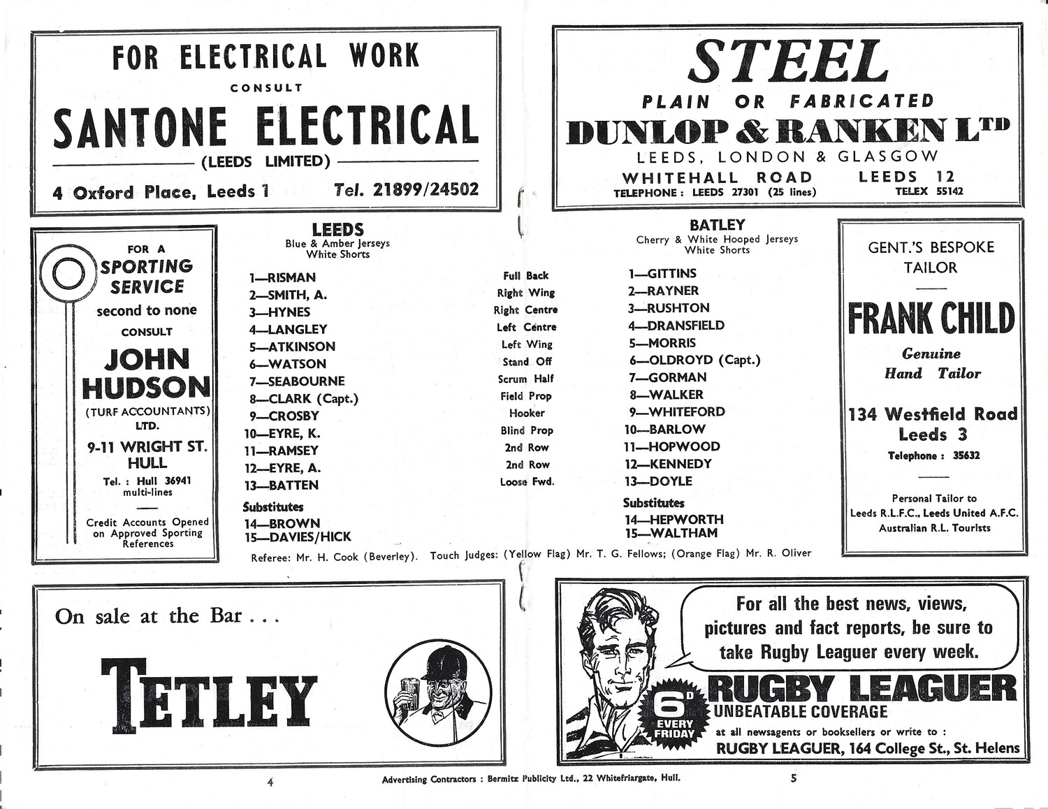 1967/68 Leeds v Batley (20/01/1968) Rugby League Programme