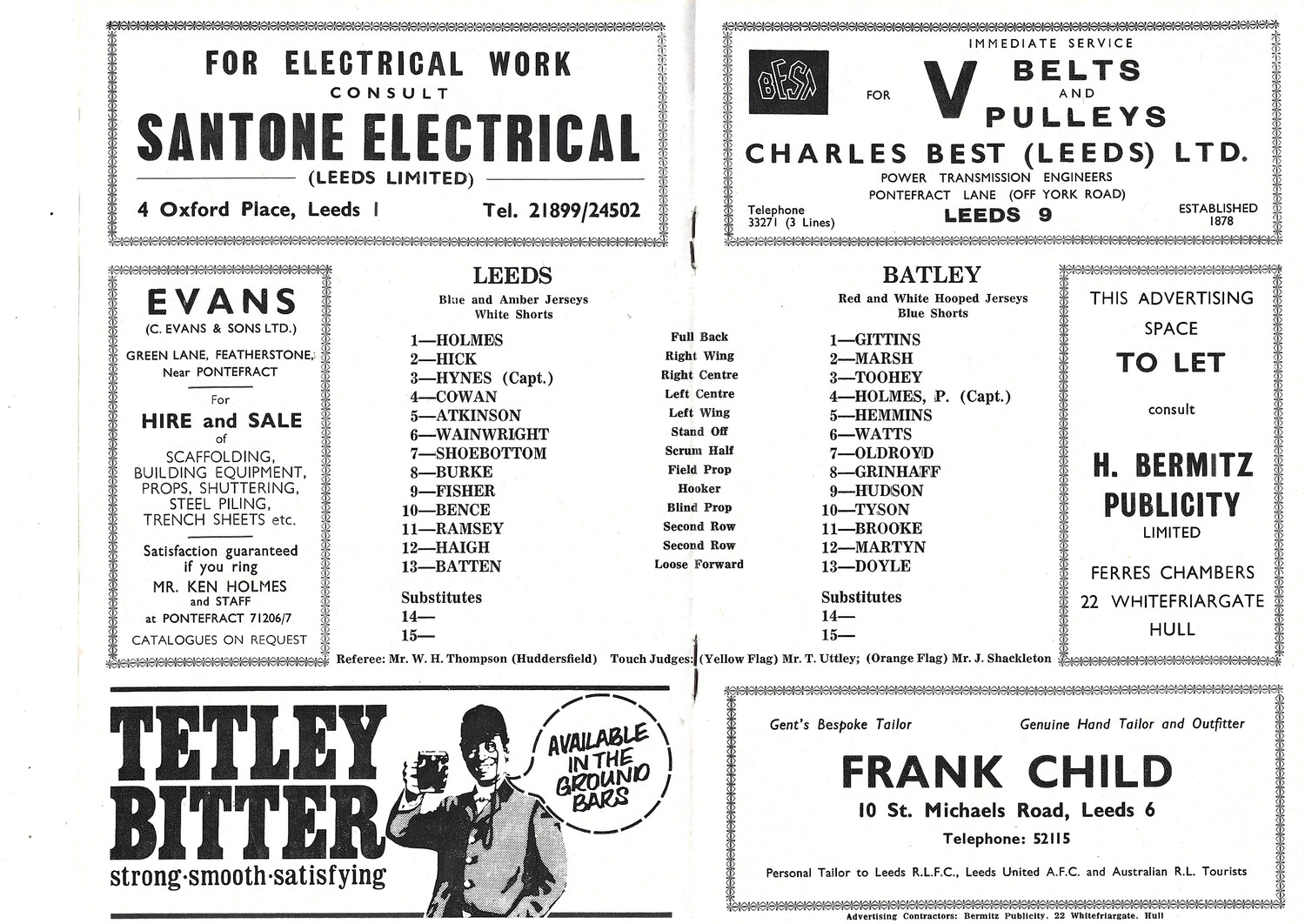 1970/71 Leeds v Batley (12/04/1971) Rugby League Programme