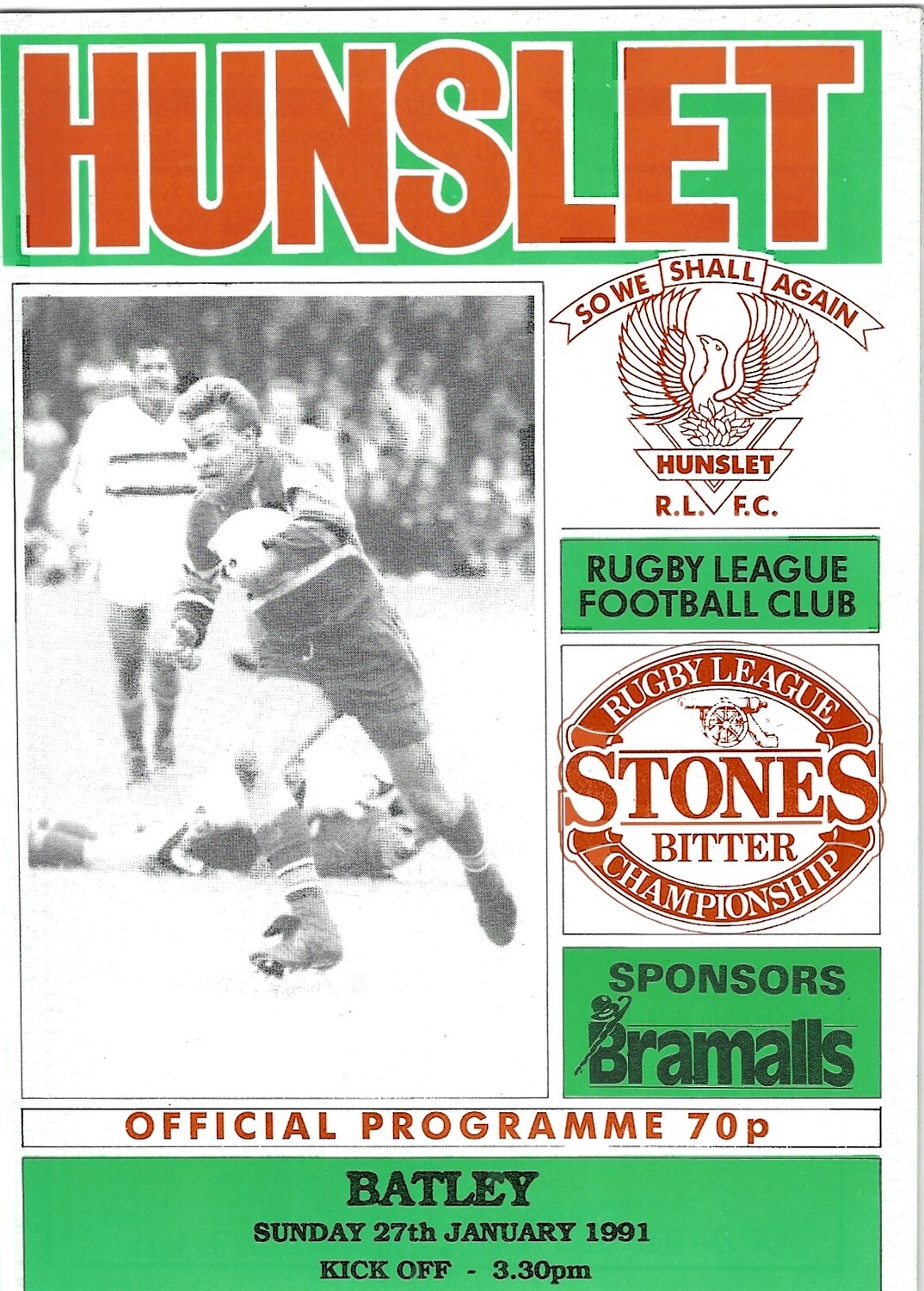 1990/91 Hunslet v Batley Rugby League programme