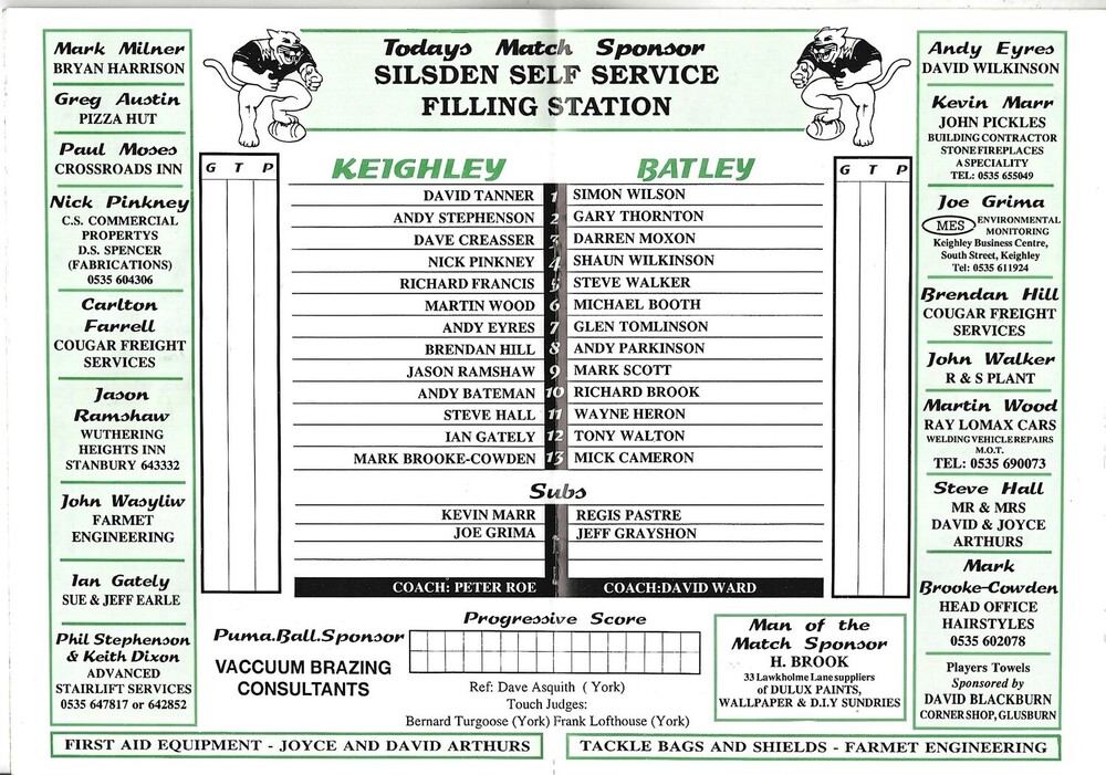 1993/94 Keighley Cougars v Batley Rugby League Programme