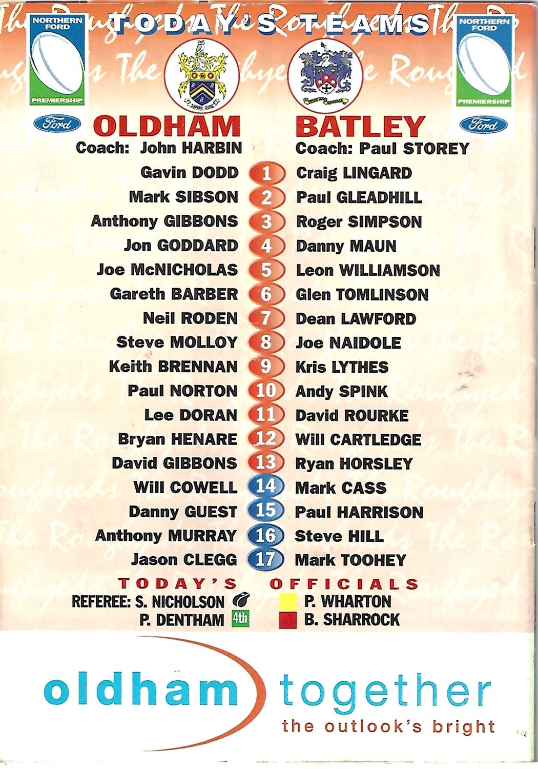 2002 Oldham v Batley Bulldogs Rugby League Programme