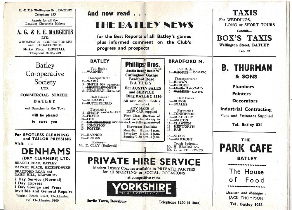 1964/65 Batley v Bradford Northern Rugby League Programme