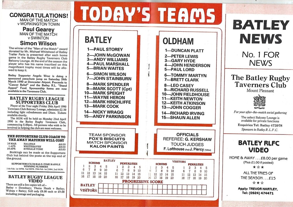 1990/91 Batley v Oldham Rugby League Programme