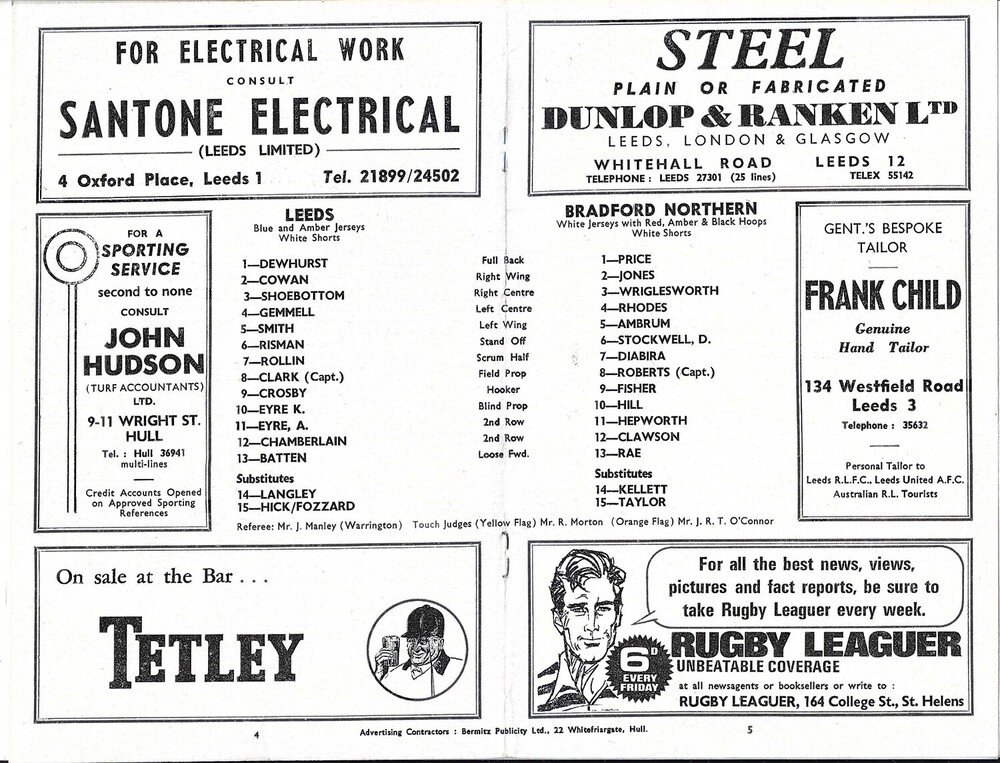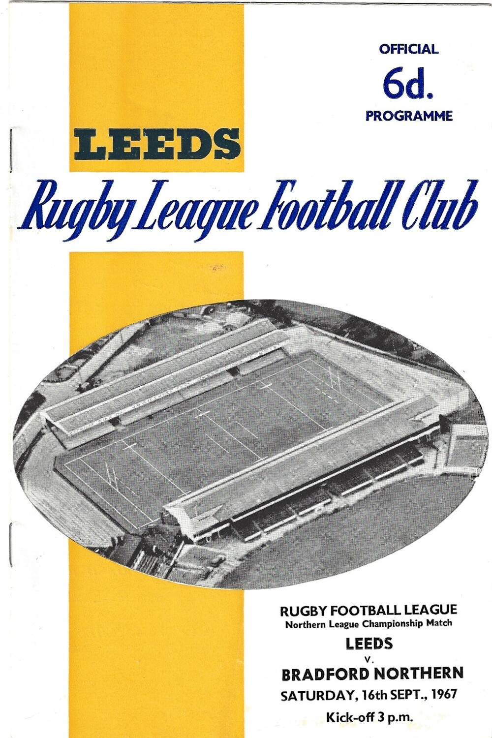 1967/68 Leeds v Bradford Northern (16/09/1967) Rugby League programme