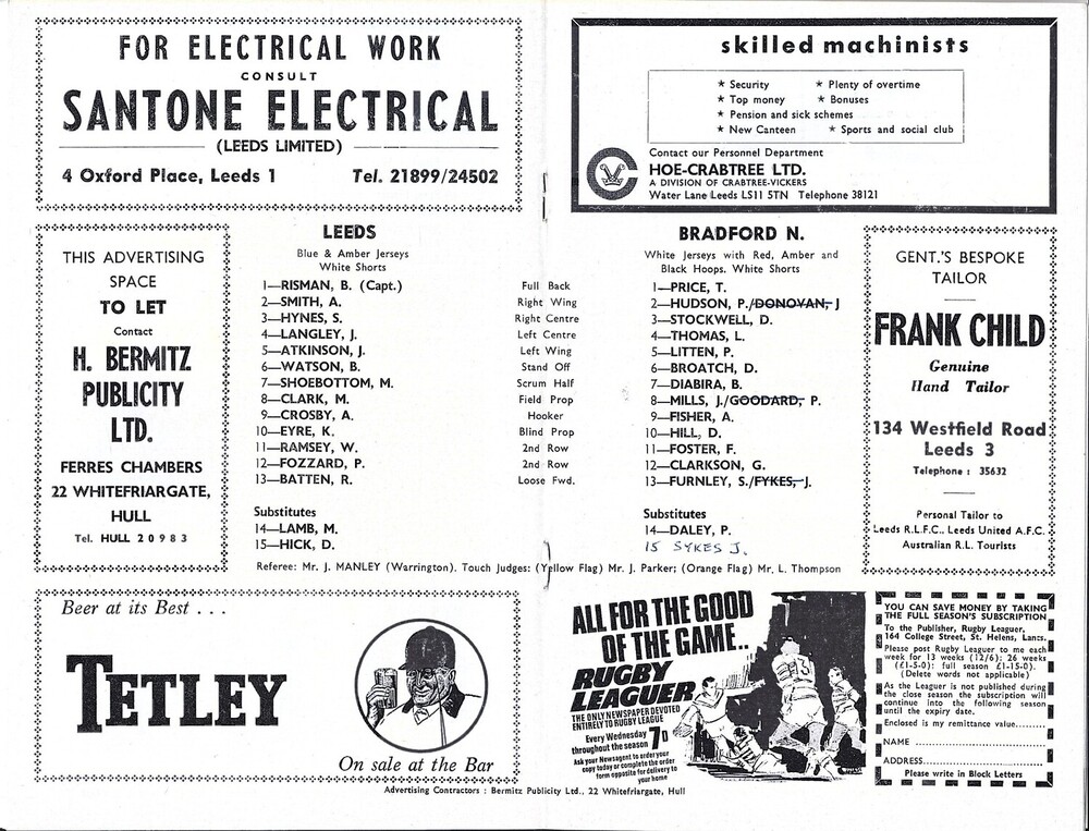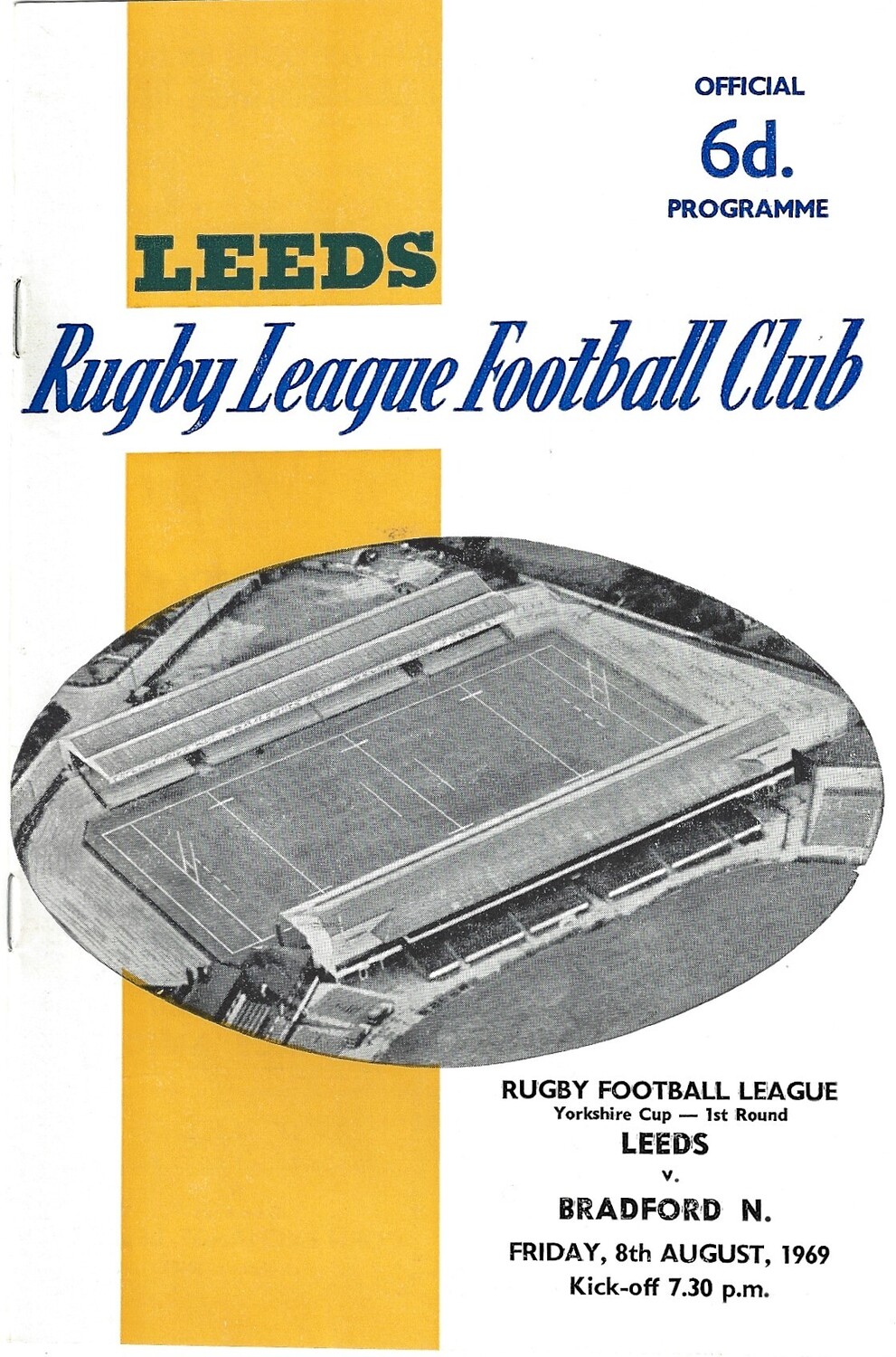 1969/70 Leeds v Bradford Northern (08/08/1969) Yorkshire Cup, First Round Rugby League Programme
