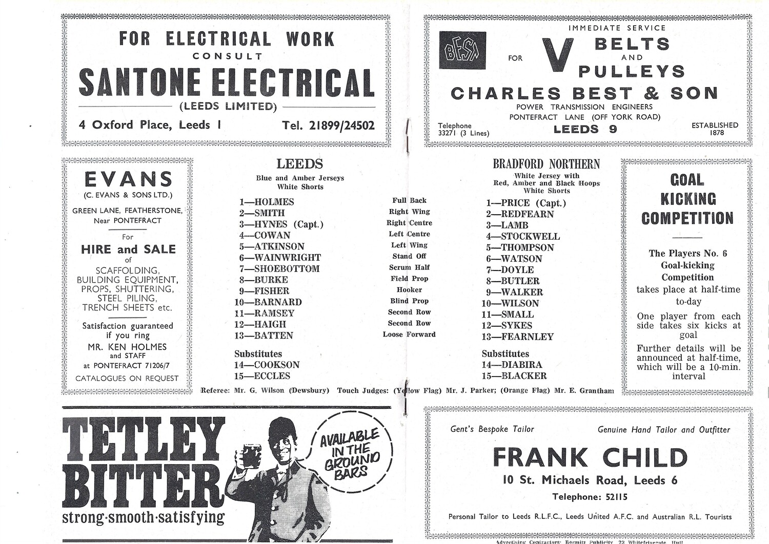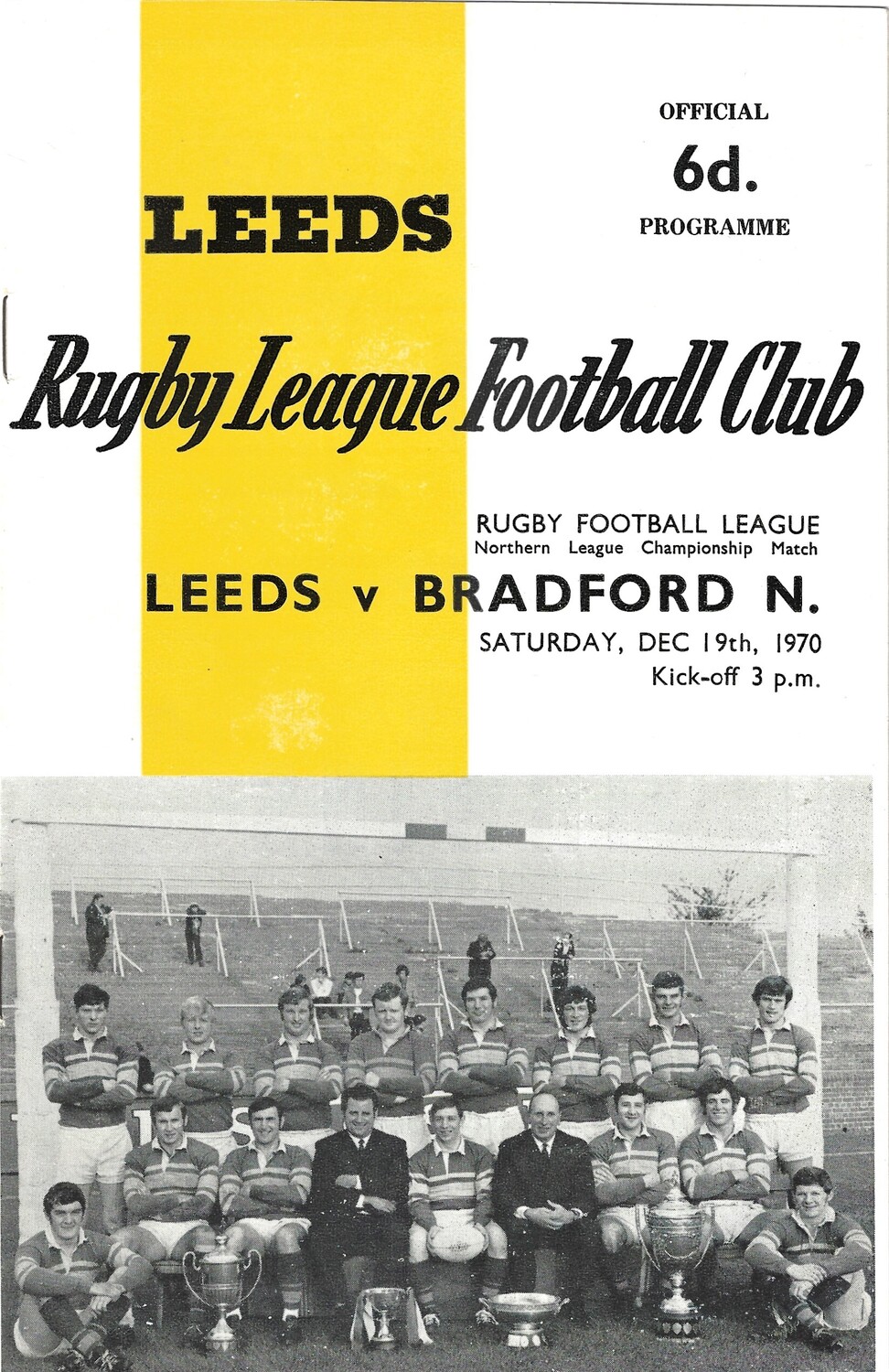1970/71 Leeds v Bradford Northern (19/12/1970) Rugby League Programme