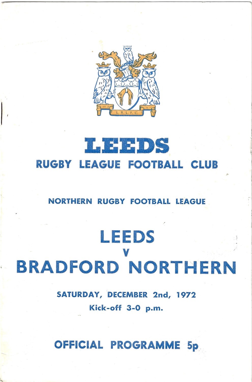 1972/73 Leeds v Bradford Northern (02/12/1972) Rugby League Programme