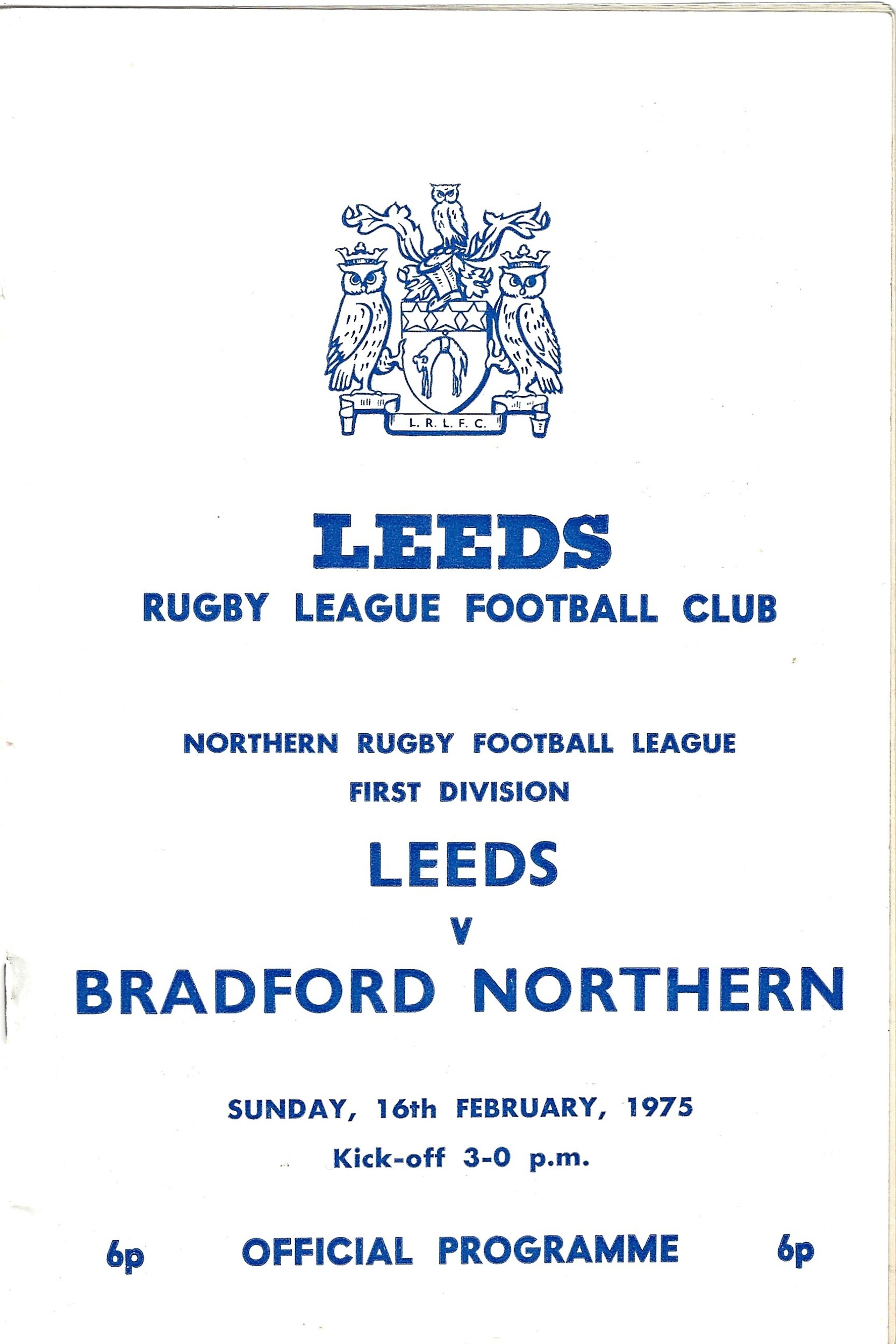 1974/75 Leeds v Bradford Northern (16/02/1975) Rugby League Programme