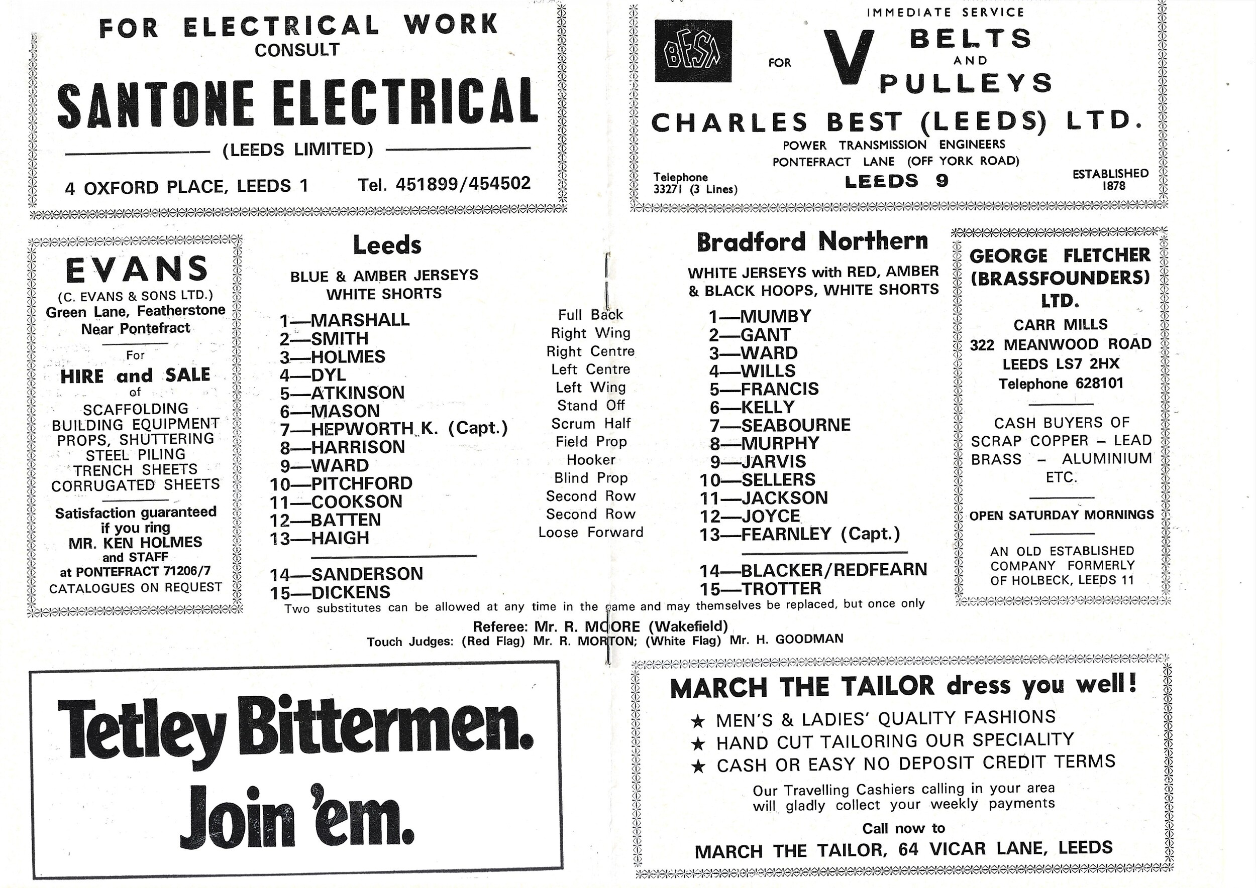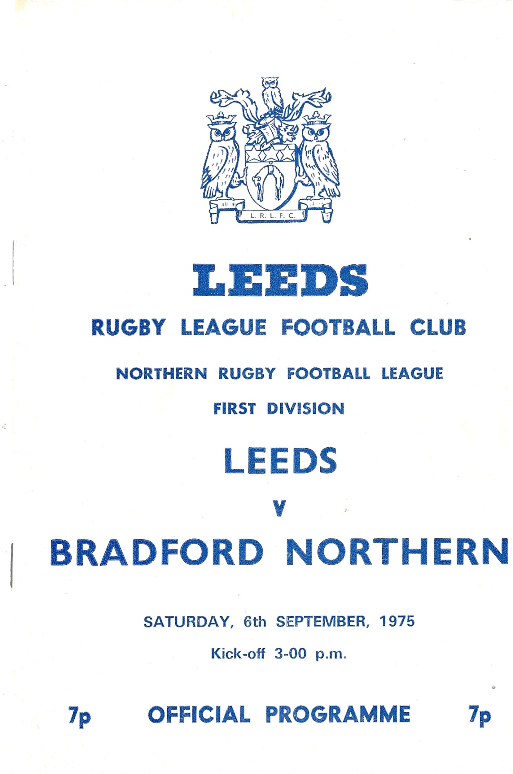 1975/76 Leeds v Bradford Northern (06/09/1975) Rugby League Programme