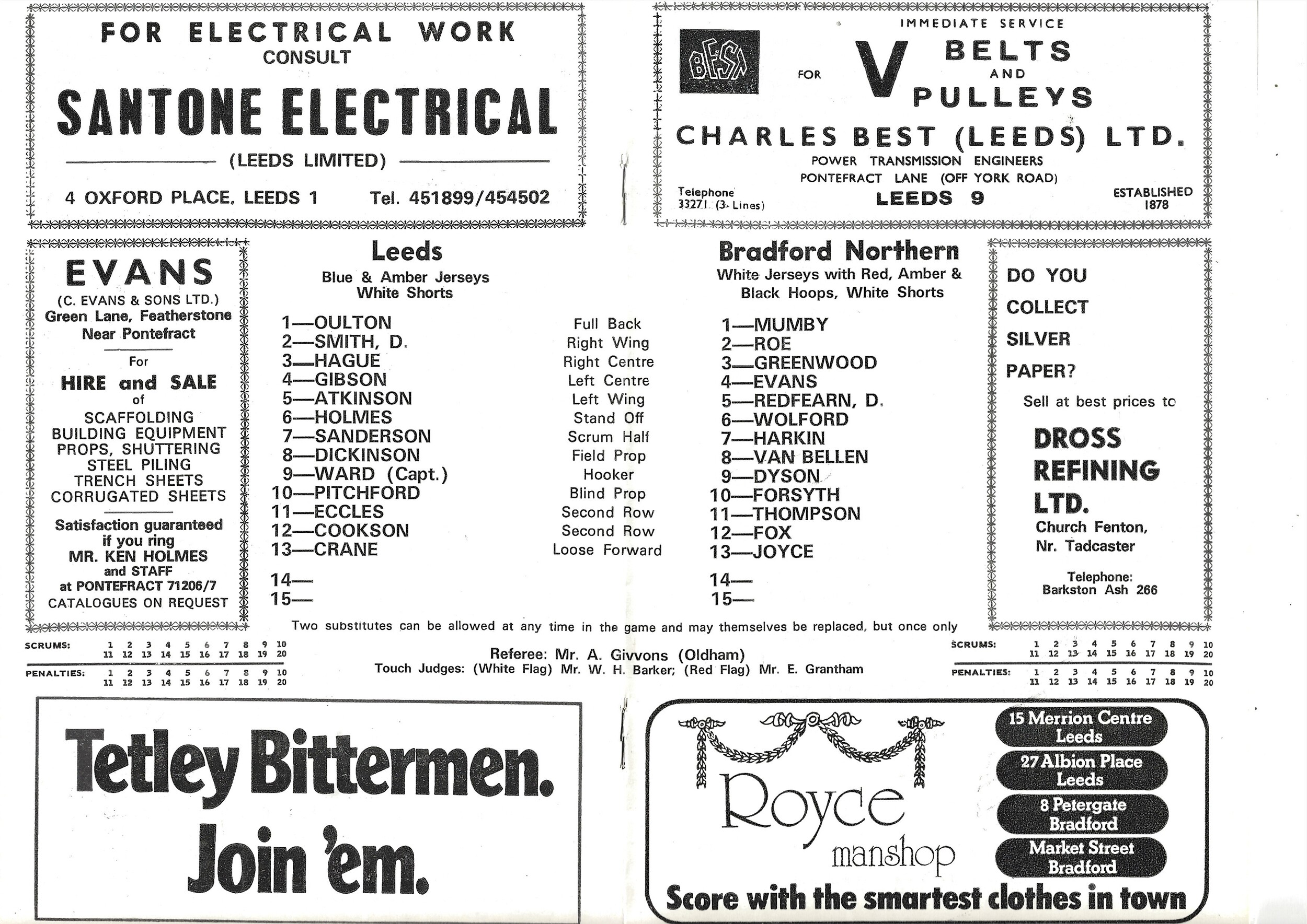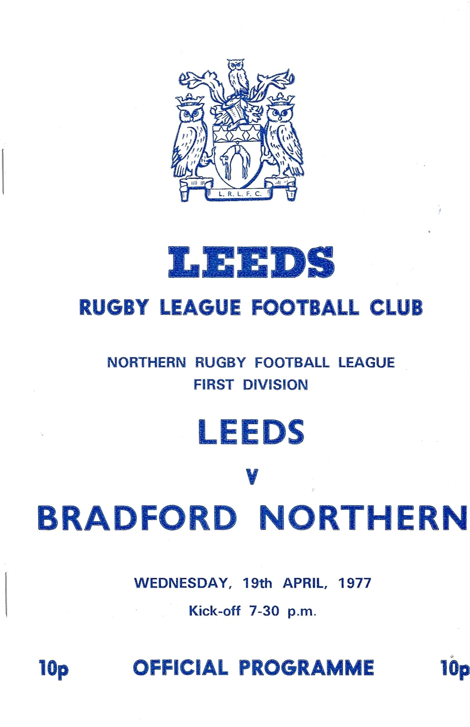 1976/77 Leeds v Bradford Northern (19/04/1977) Rugby League Programme