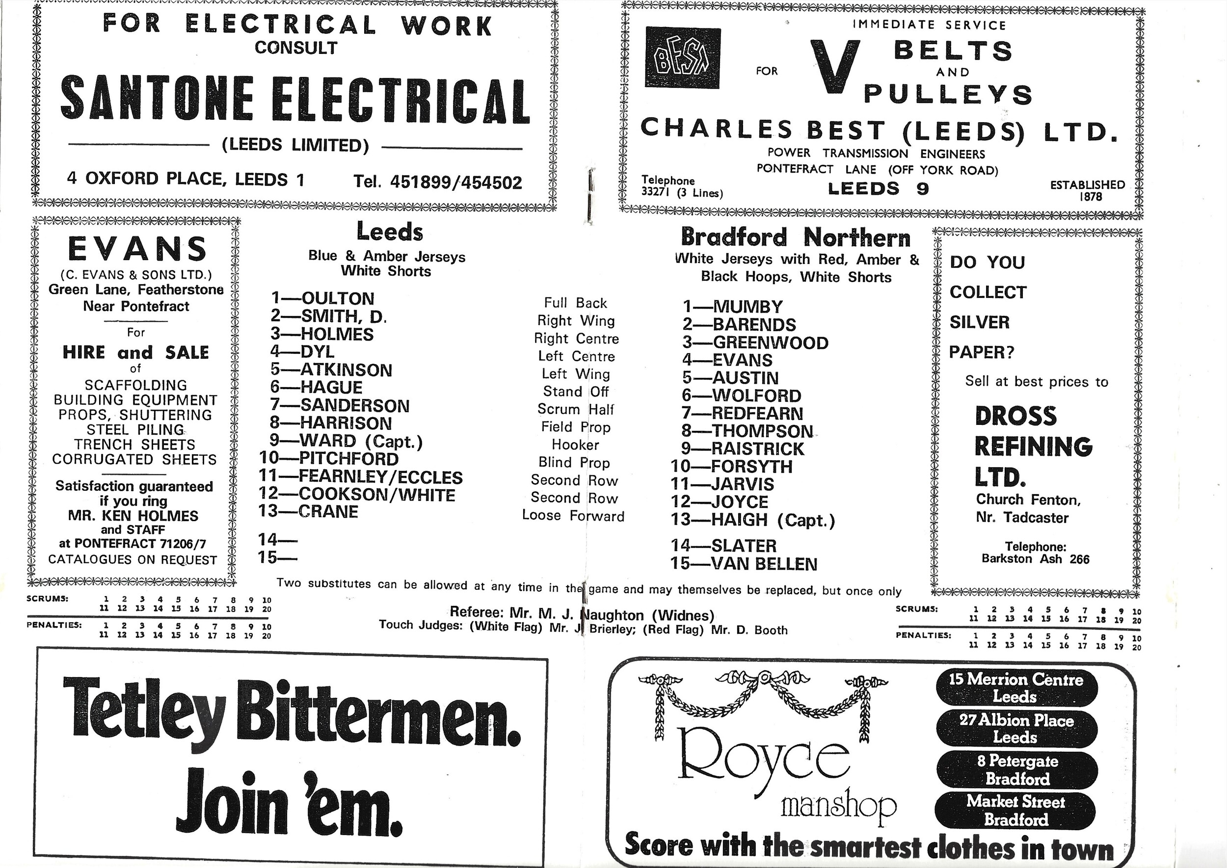 1977/78 Leeds v Bradford Northern (19/03/1978) Rugby League Programme