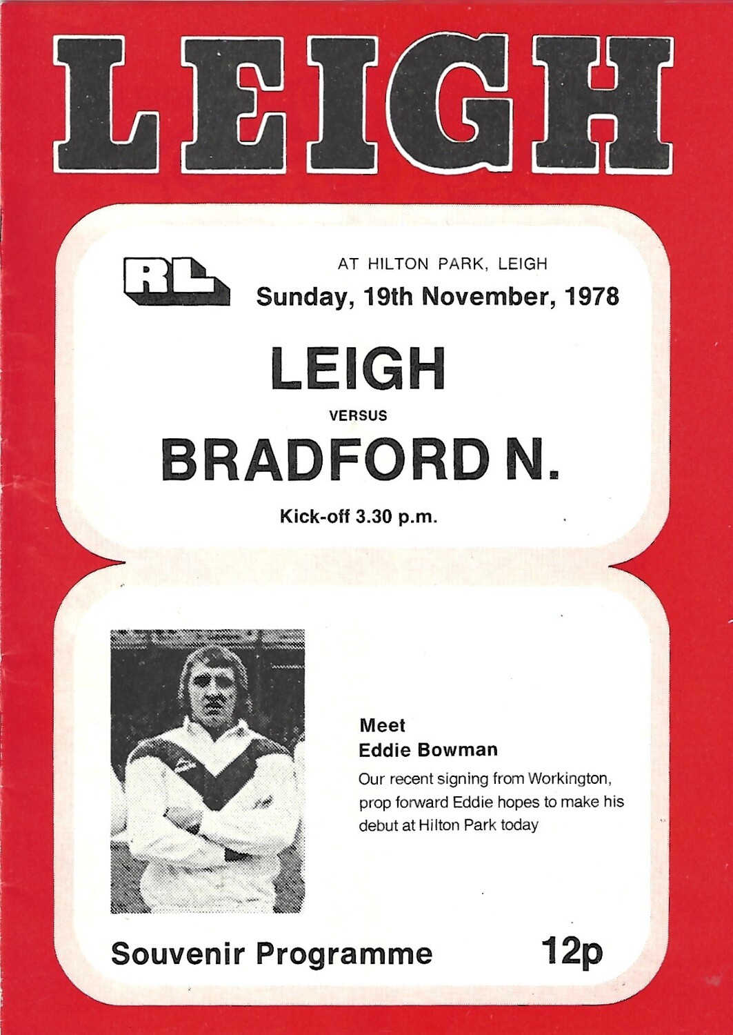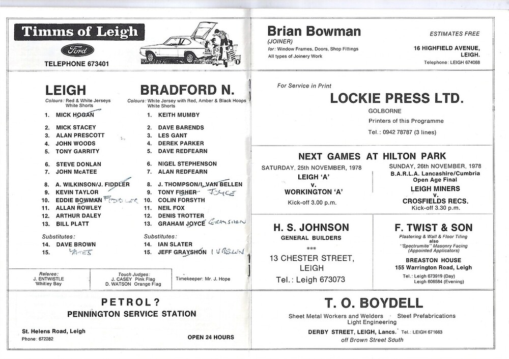 1977/78 Leigh v Bradford Northern Rugby League Programme