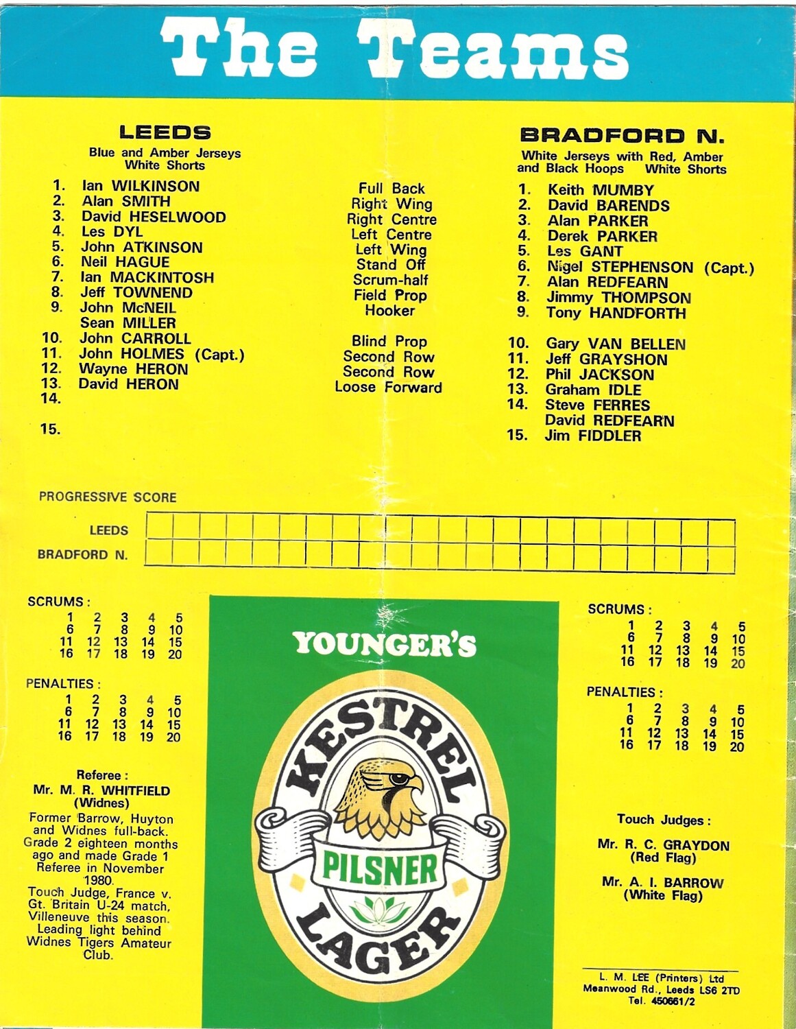 1980/81 Leeds v Bradford Northern Rugby League programme