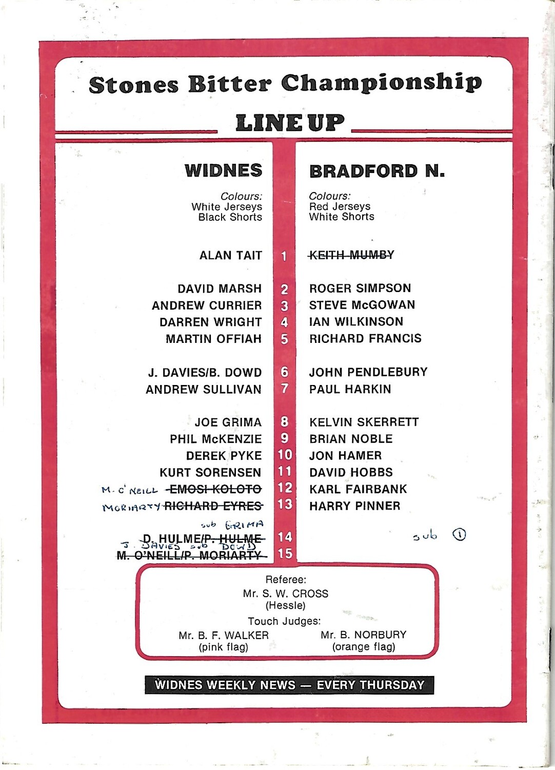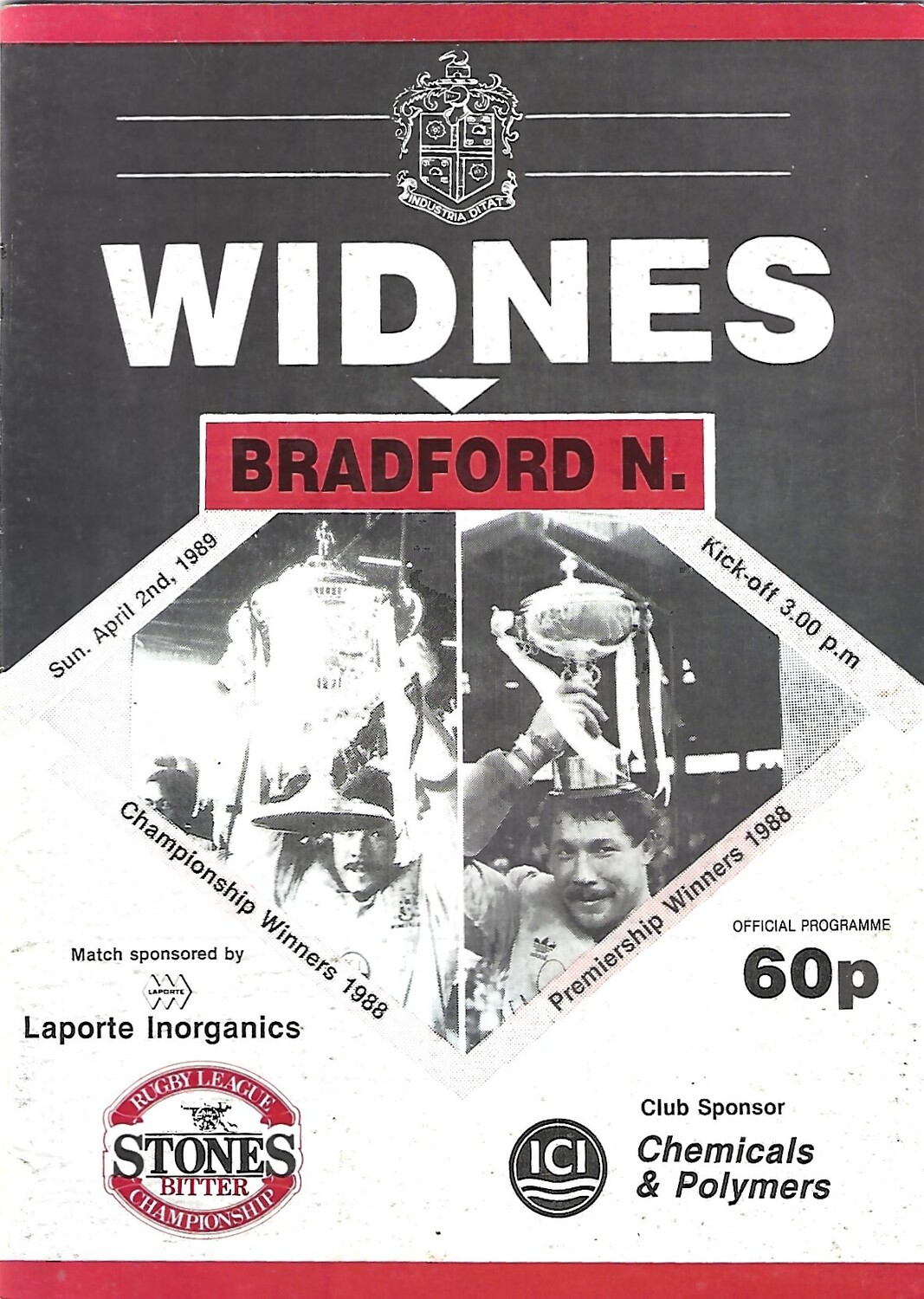 1988/89 Widnes v Bradford Northern Rugby League Programme