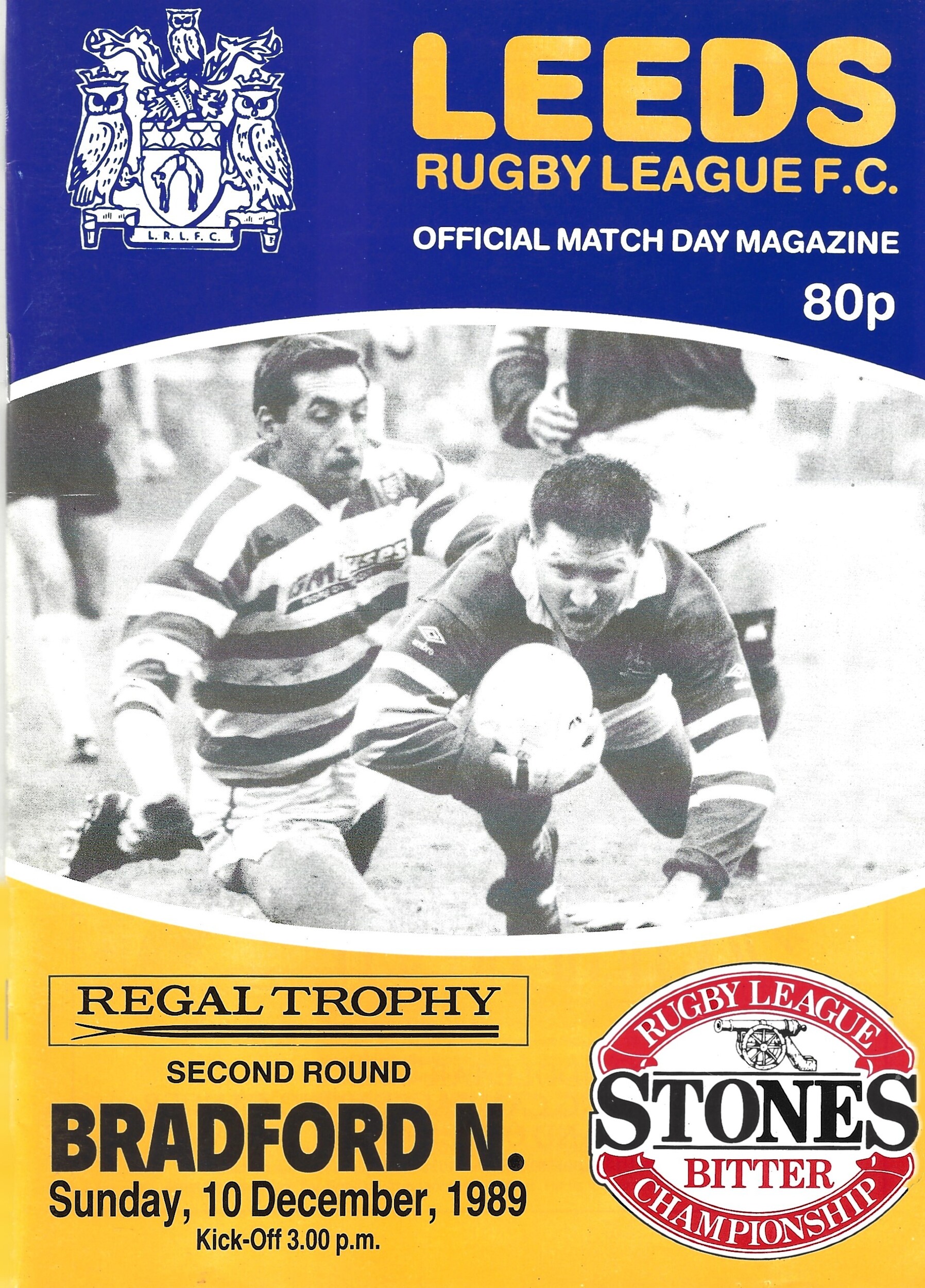 1989/90 Leeds v Bradford Northern (10/12/1989) Regal Trophy Second Round Rugby League Programme