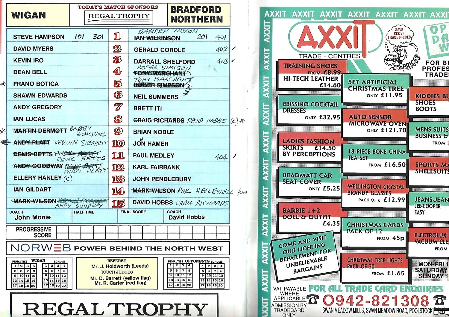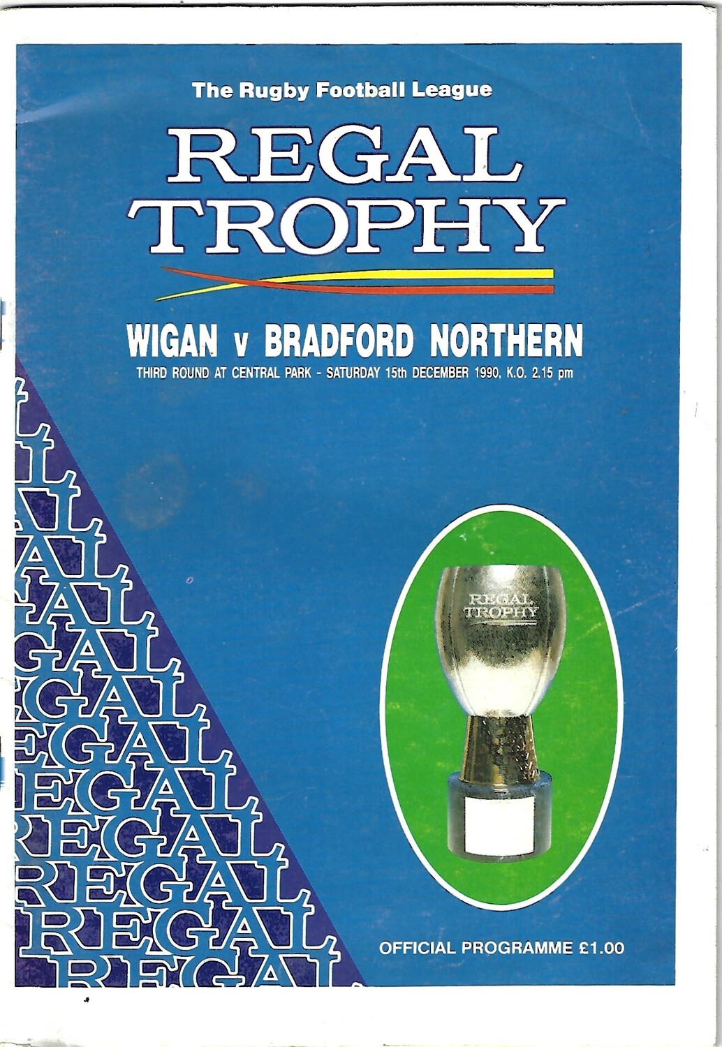 1990/91 Wigan v Bradford Northern (15/12/1990) 3rd Round Regal Trophy Rugby League Programme