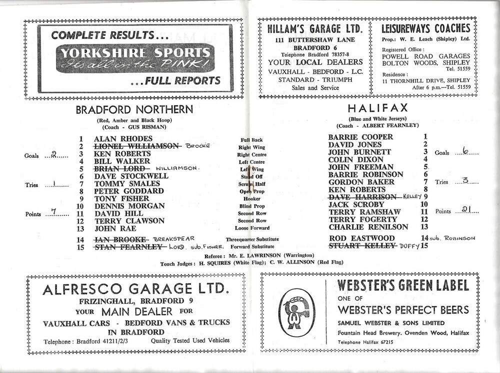 1965/66 Bradford Northern v Halifax Rugby League Challenge Cup 1st Round Programme