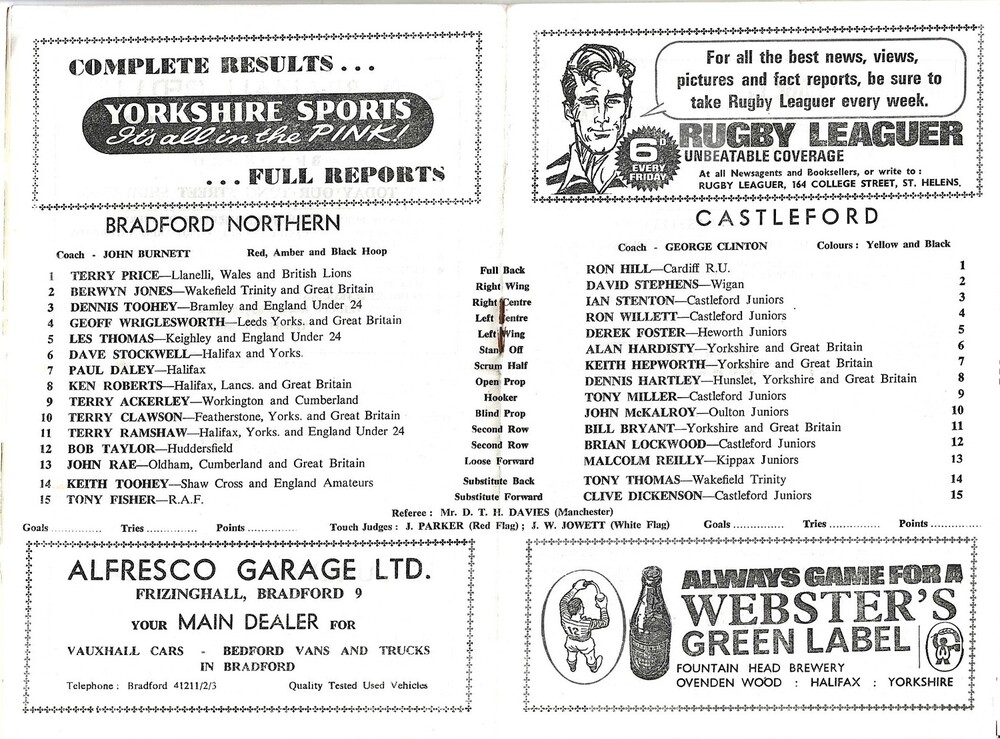 1967/68 Bradford Northern v Castleford Rugby League Programme