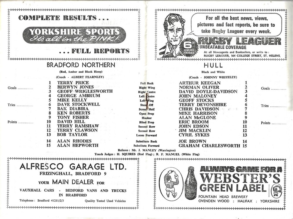 1967/68 Bradford Northern v Hull Rugby League Programme