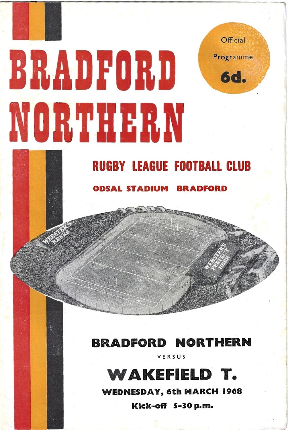 1967/68 Bradford Northern v Wakefield Trinity Rugby League Programme