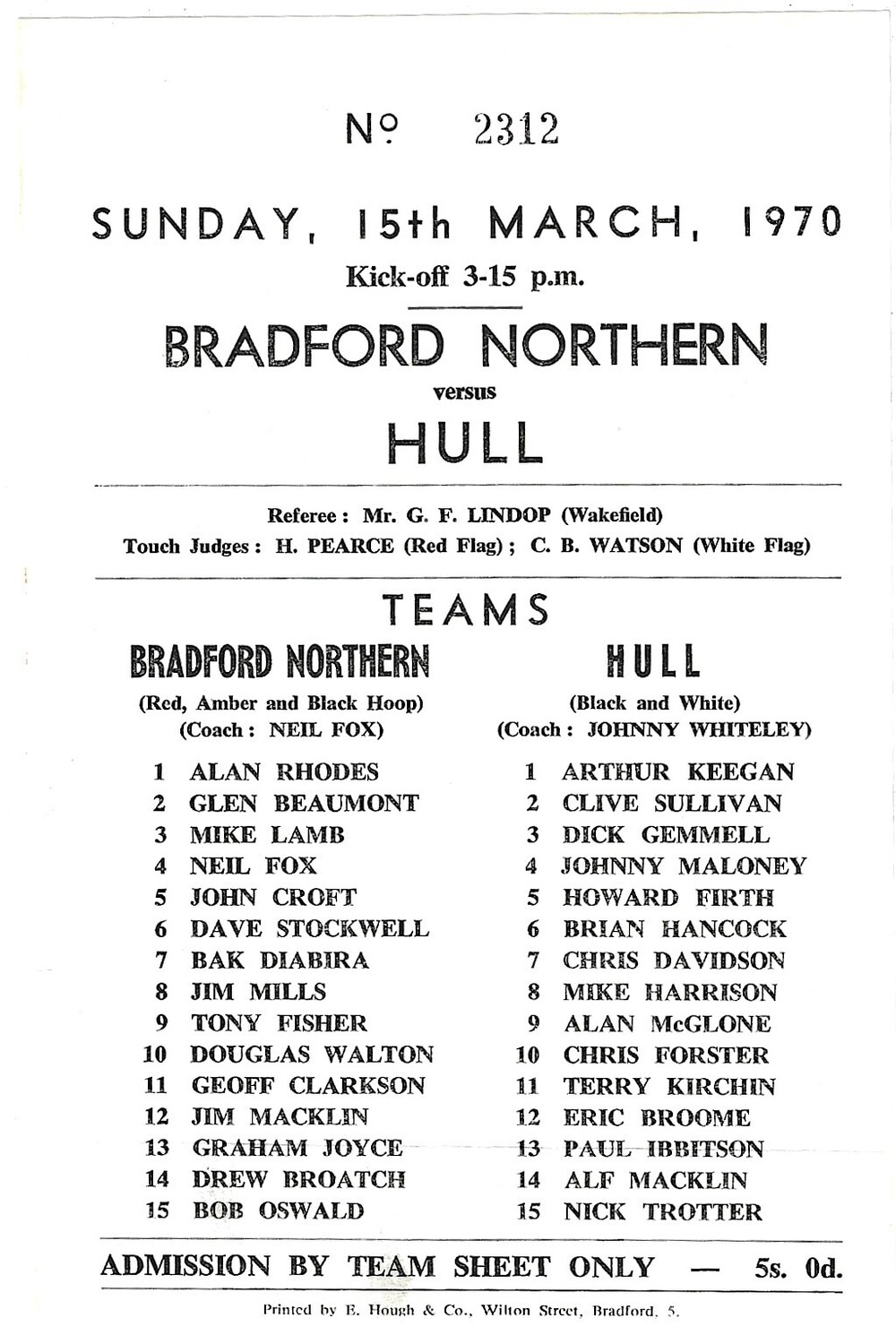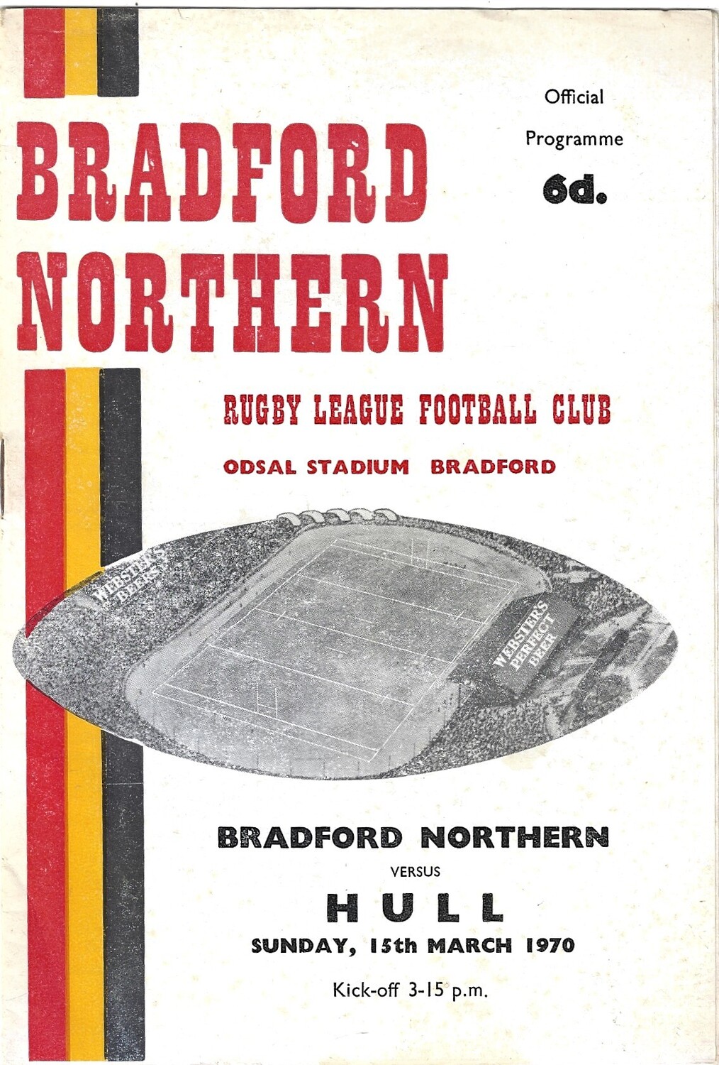 1969/70 Bradford Northern v Hull Rugby League Programme & Team Sheet