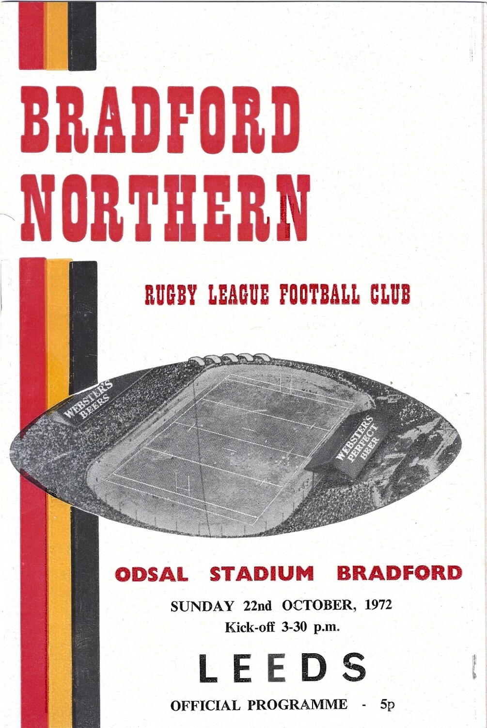 1972/73 Bradford Northern v Leeds Rugby League programme